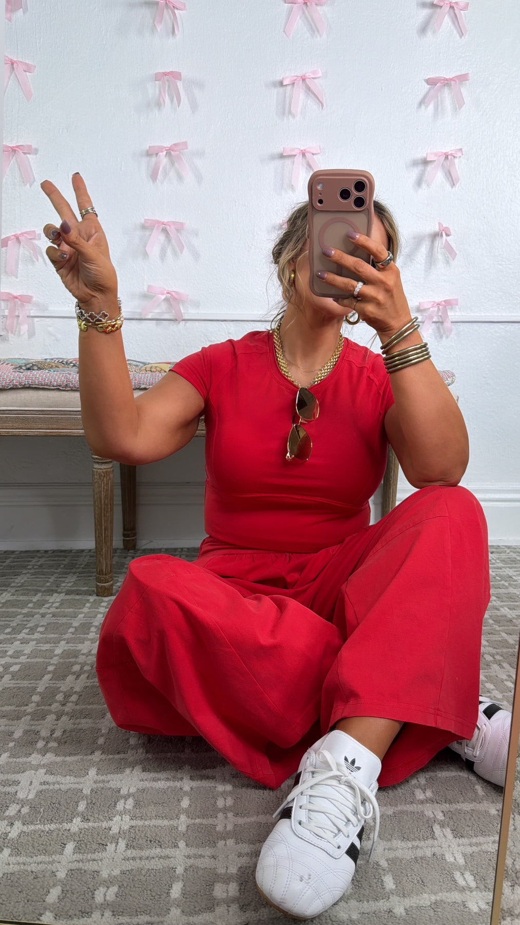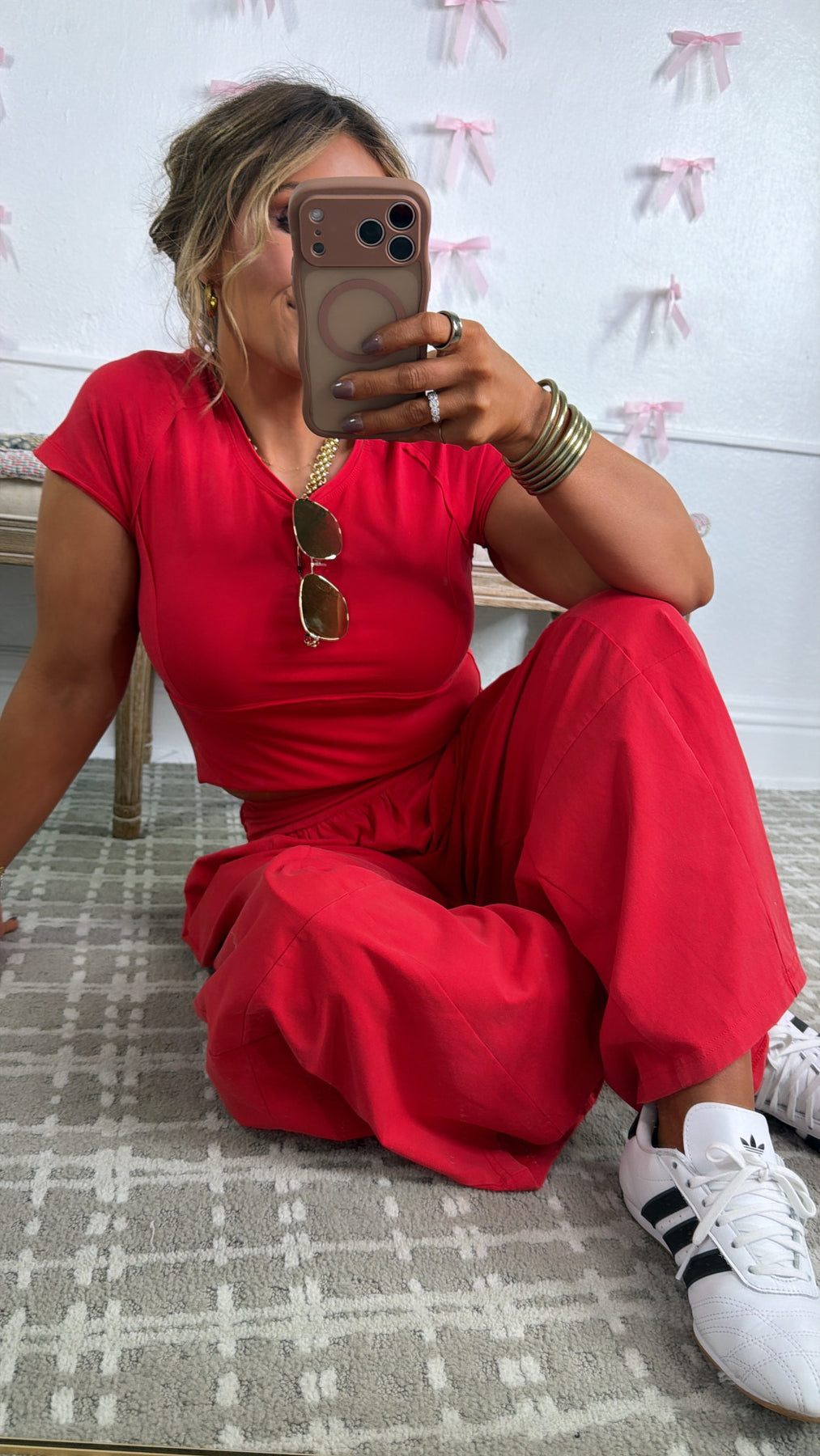 I am SO pleased with this set. Fits so perfectly. I’m 5’6 and 120 and Small is perfect! The red color is vibrant and amazing. Overall could not be happier. I may need the other color. The shipping was super fast as well so overall impressed with the the boutique and the set!
