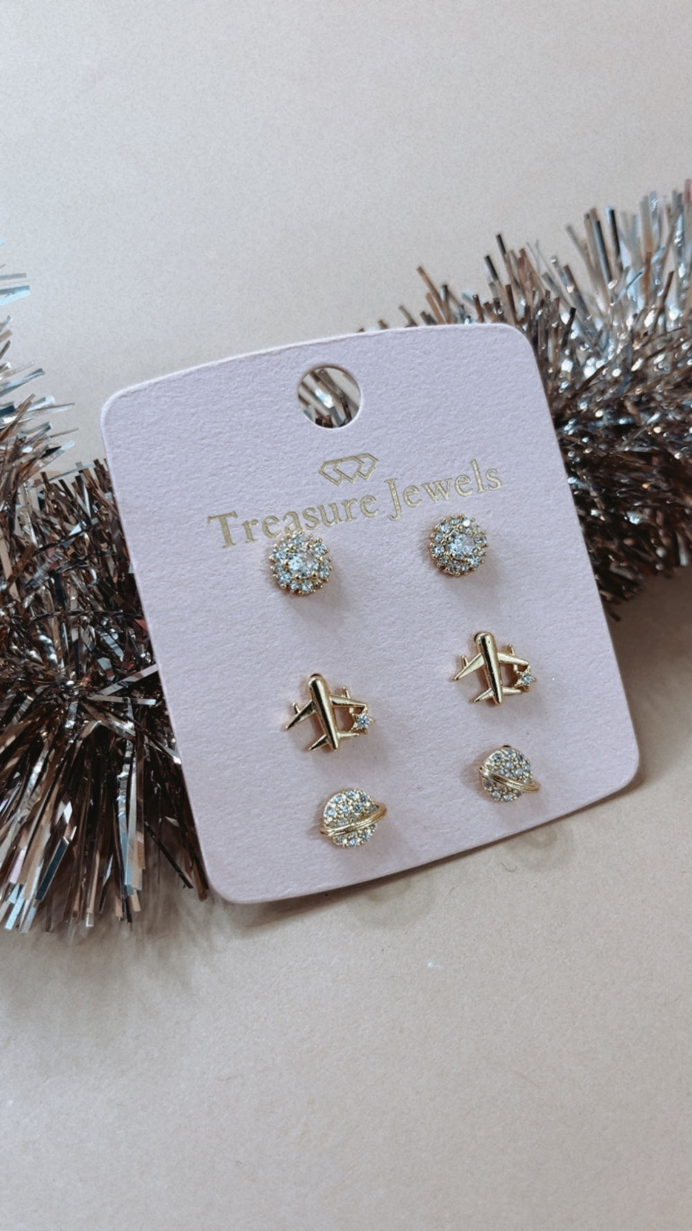 Treasure Jewels: Airplane Stud Earring Set Gold