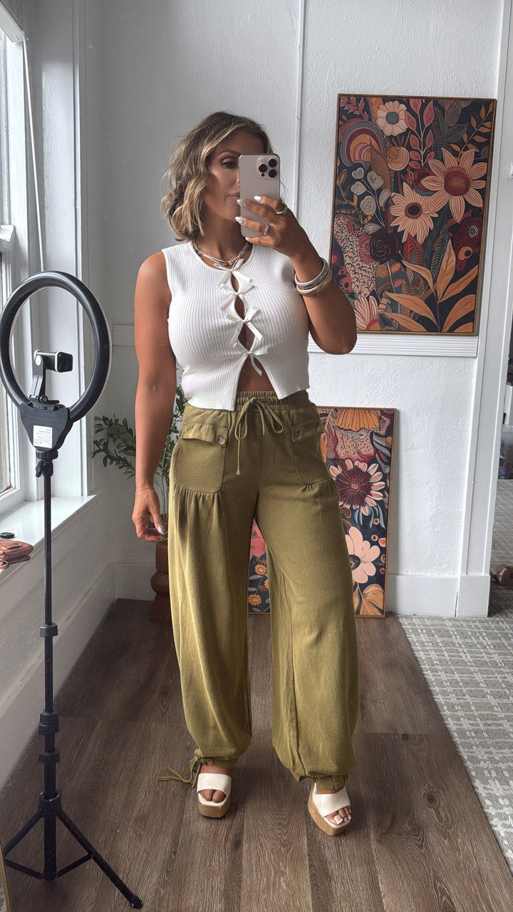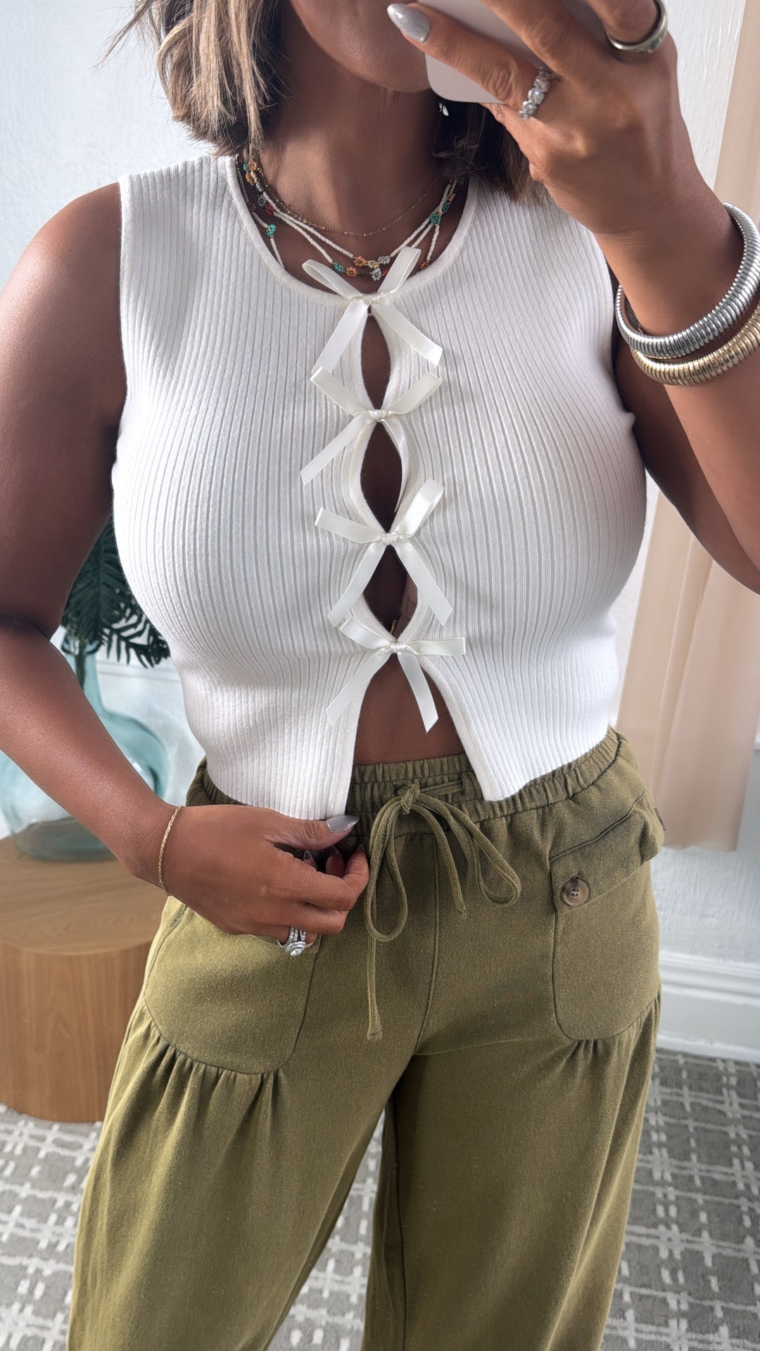 Satin Bow Sweater Tank, Cream