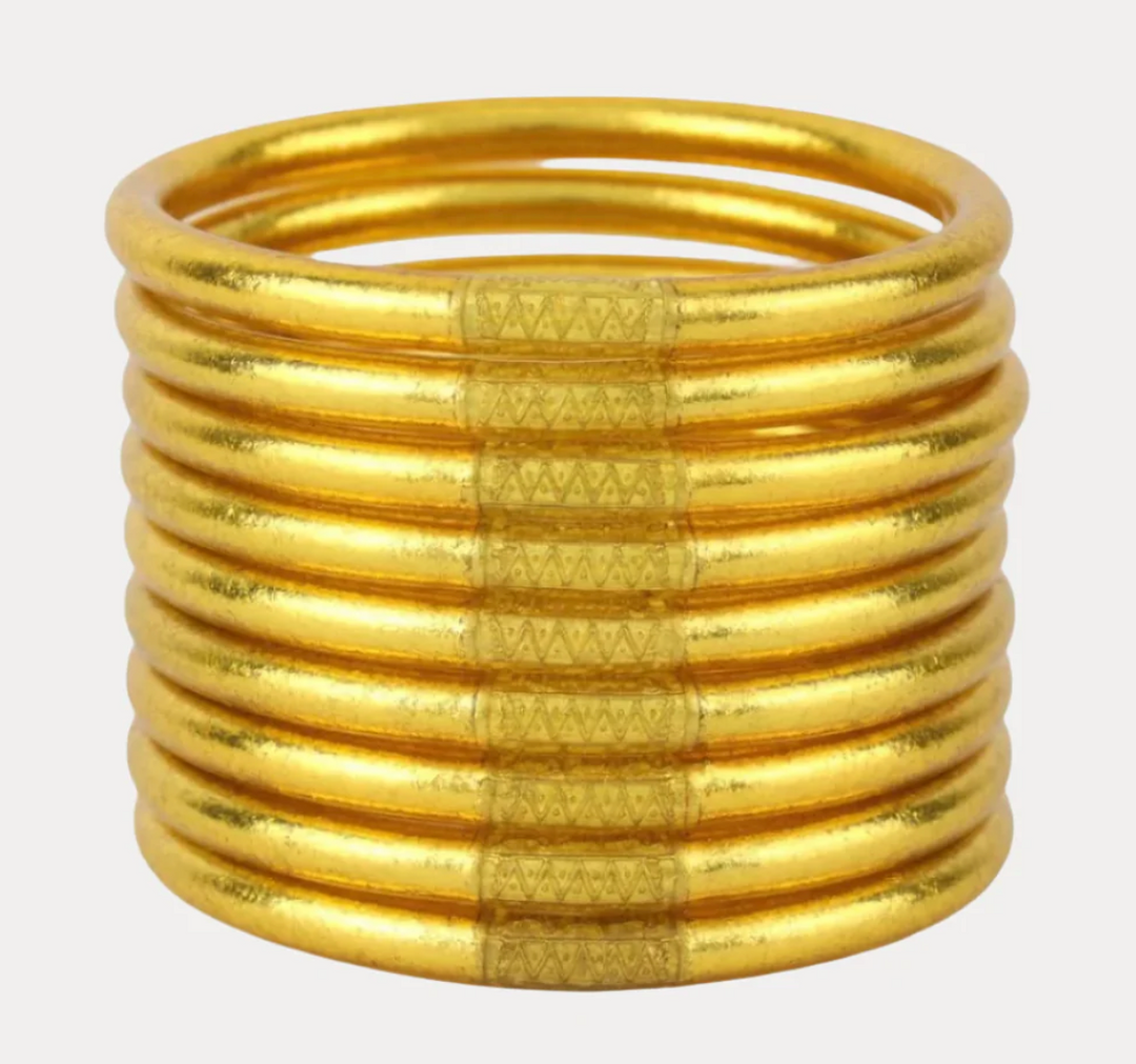 BuDhaGirl: Gold All Weather Bangle (Set of 6)- Serenity Prayer