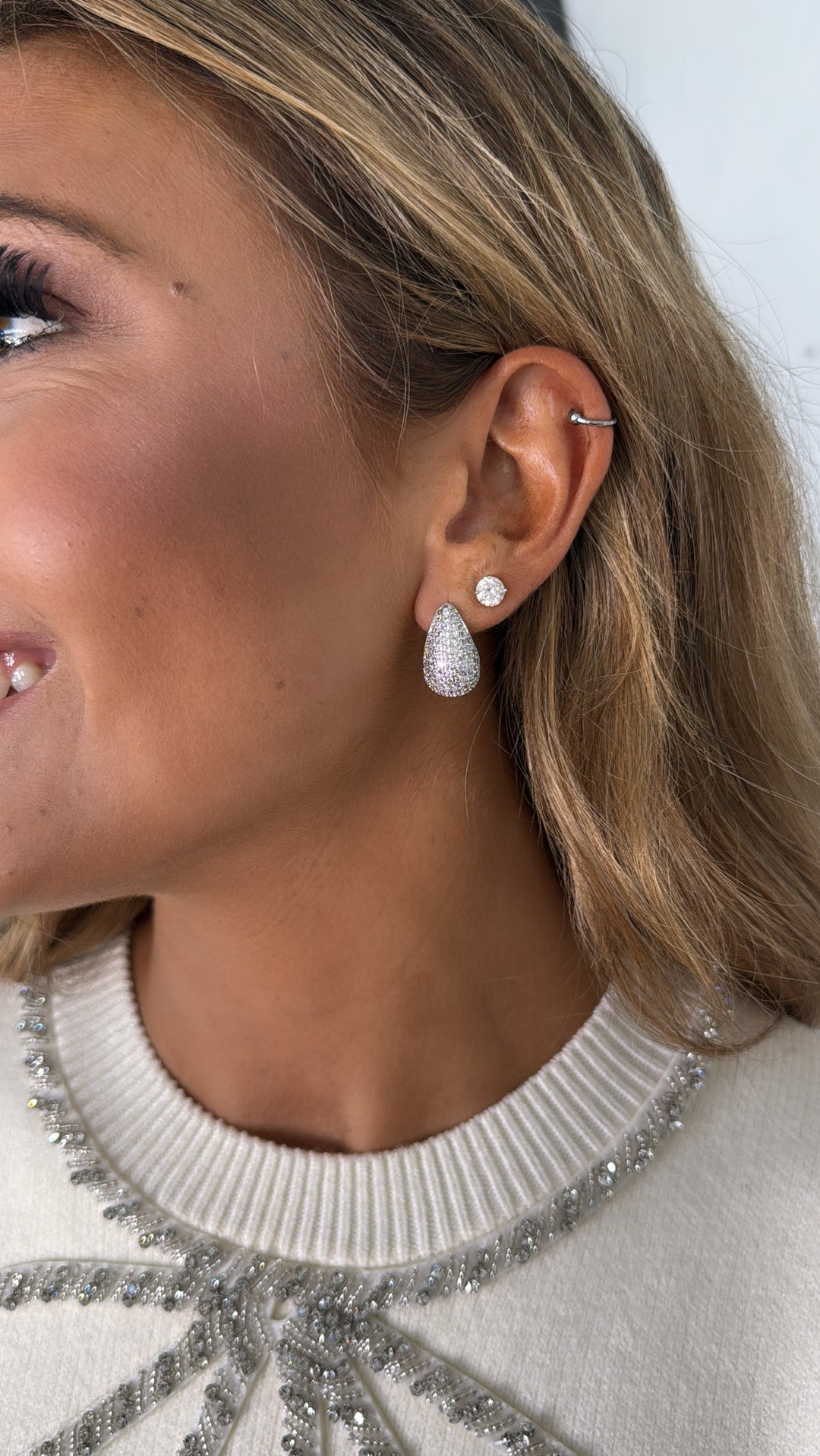 Treasure Jewels: Tear Of Glam Earring, Silver
