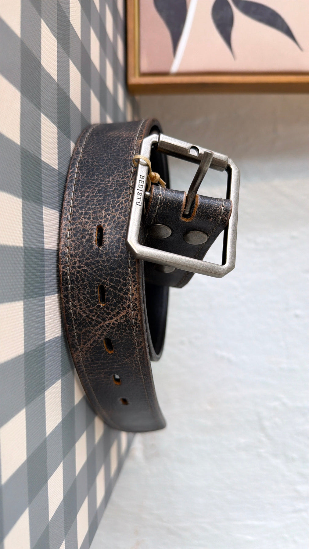 Rugged meets versatile. The rich distressed leather of the Meander reinforces the impressive simplicity of this everyday functional belt.