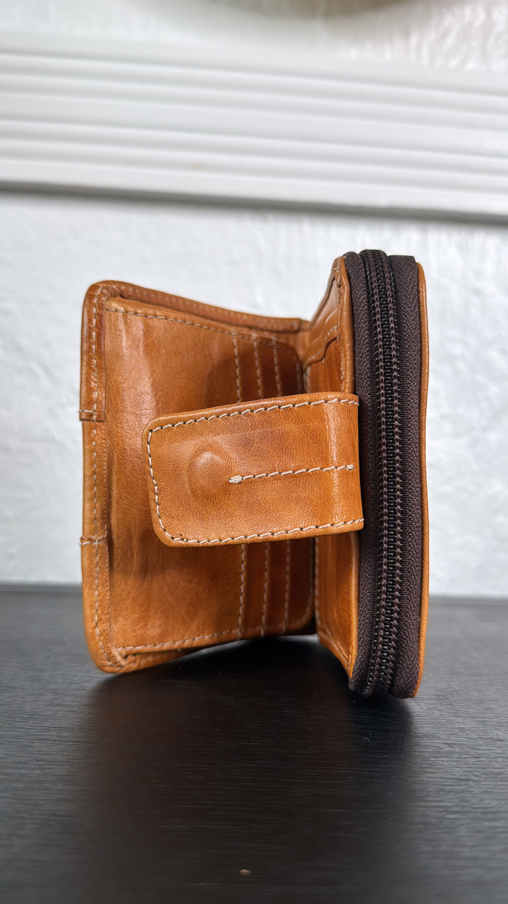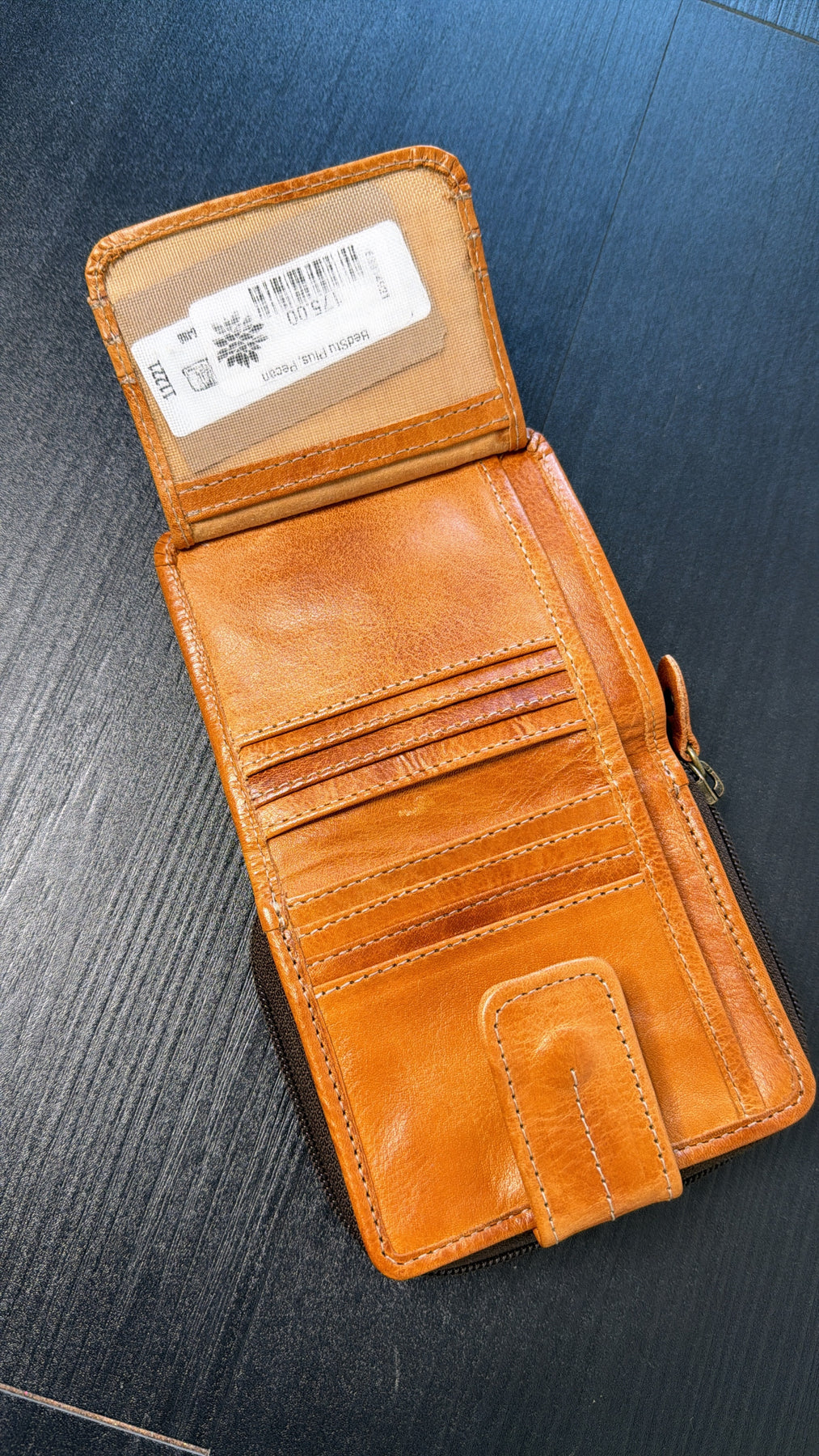 Plus is the compact leather wallet that has it all - multiple card and ID slots, a bifold for receipts and cash, and a zippered coin pocket with a divider that doubles as another card slot for extra security and storage - all in one. The bifold features a secure button closure, keeping your valuables organized and safe no matter where you're headed. This stylish leather wallet effortlessly blends modern functionality with quality materials to bring you endless versatility.