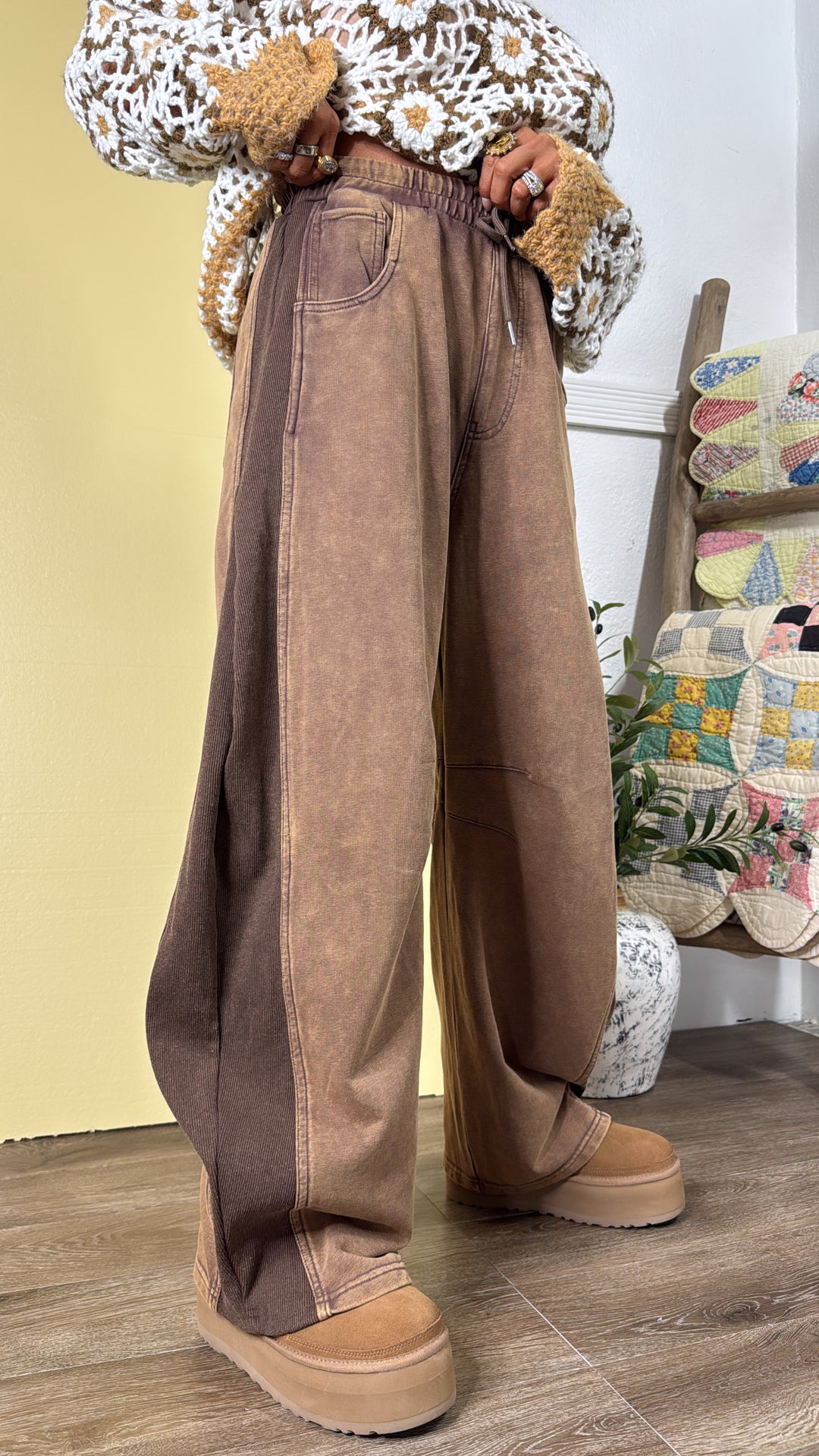 For The Love Of Floral Embroidered Denim Jogger, Mocha