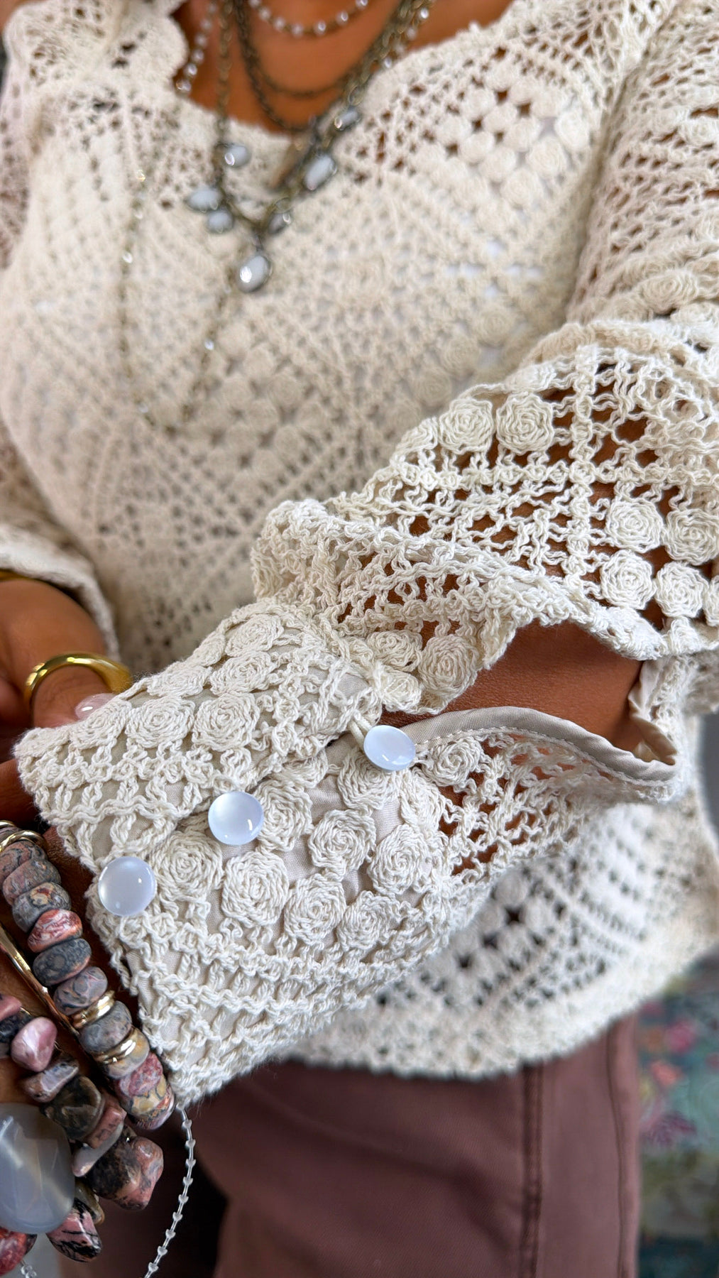 Light, airy, and effortlessly feminine. The Boardwalk Breeze Crochet Top brings a romantic boho feel to your everyday wardrobe. Designed with intricate crochet detailing and a soft ecru hue, this top features delicate scalloped edges and beautiful open-knit patterns that create a timeless, vintage-inspired look.