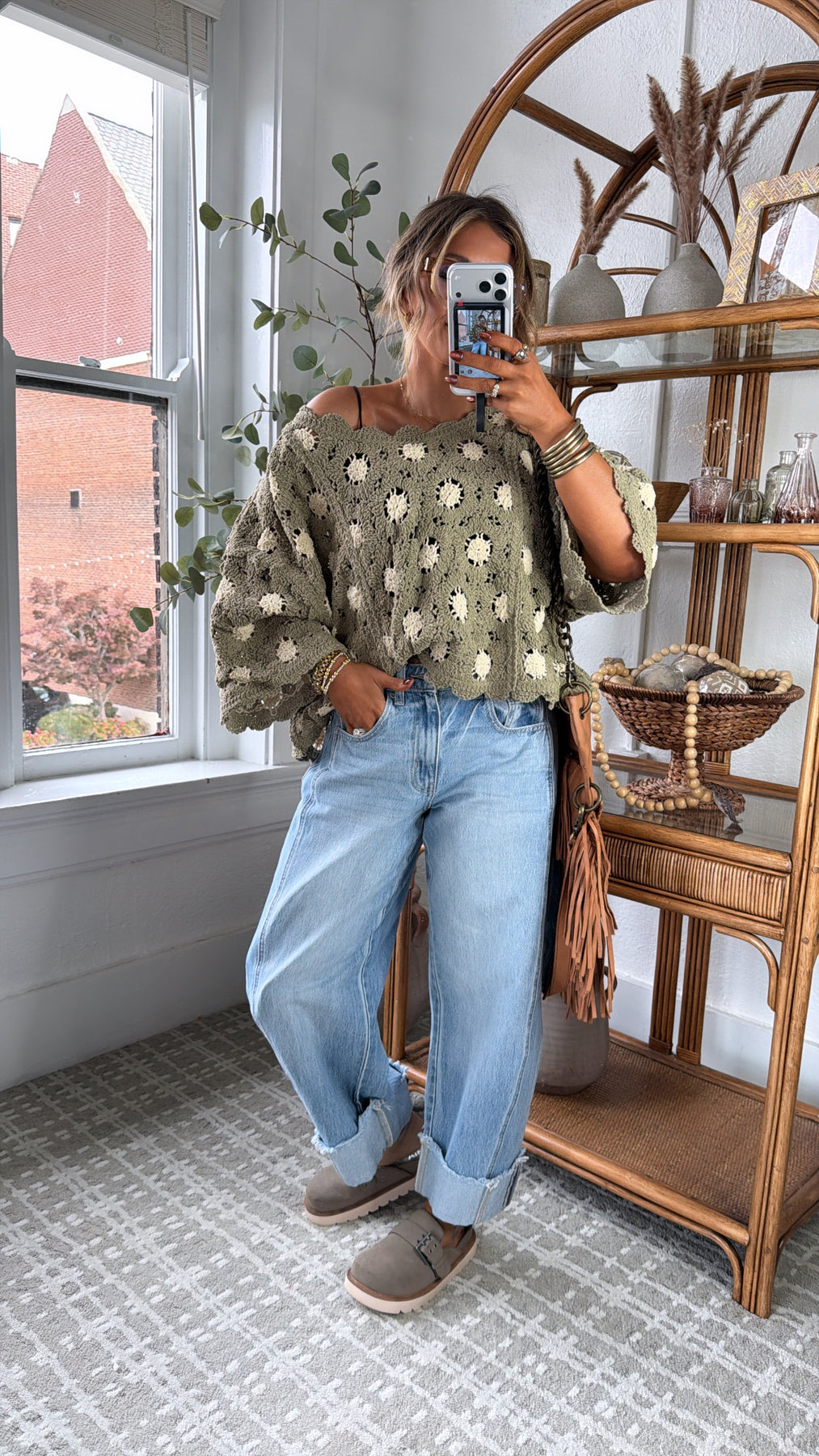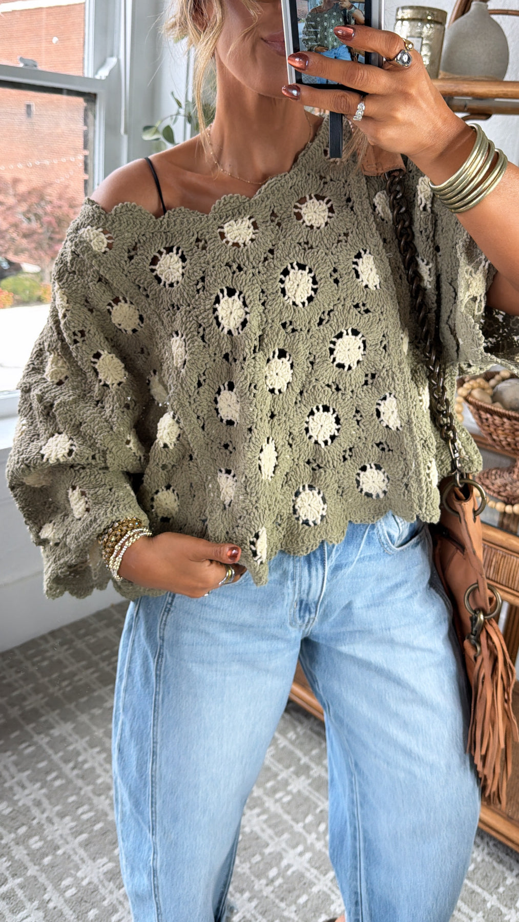 Bring on the cozy charm with the Emberlynn Knit Top. This dreamy crochet piece blends vintage-inspired texture with a modern, boho silhouette—perfect for effortless, everyday style.