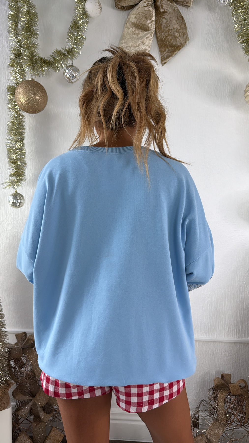 Santa Sleigh Sequin Crewneck, Lt.Blue