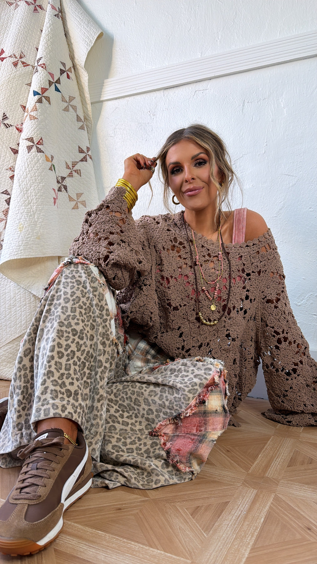 Effortlessly romantic with a touch of vintage charm, the Scalloped Hem Crochet Sweater is a true statement layering piece. Featuring an intricate open-knit crochet design, this sweater drapes beautifully with a relaxed, lived-in feel that’s made for styling year-round.