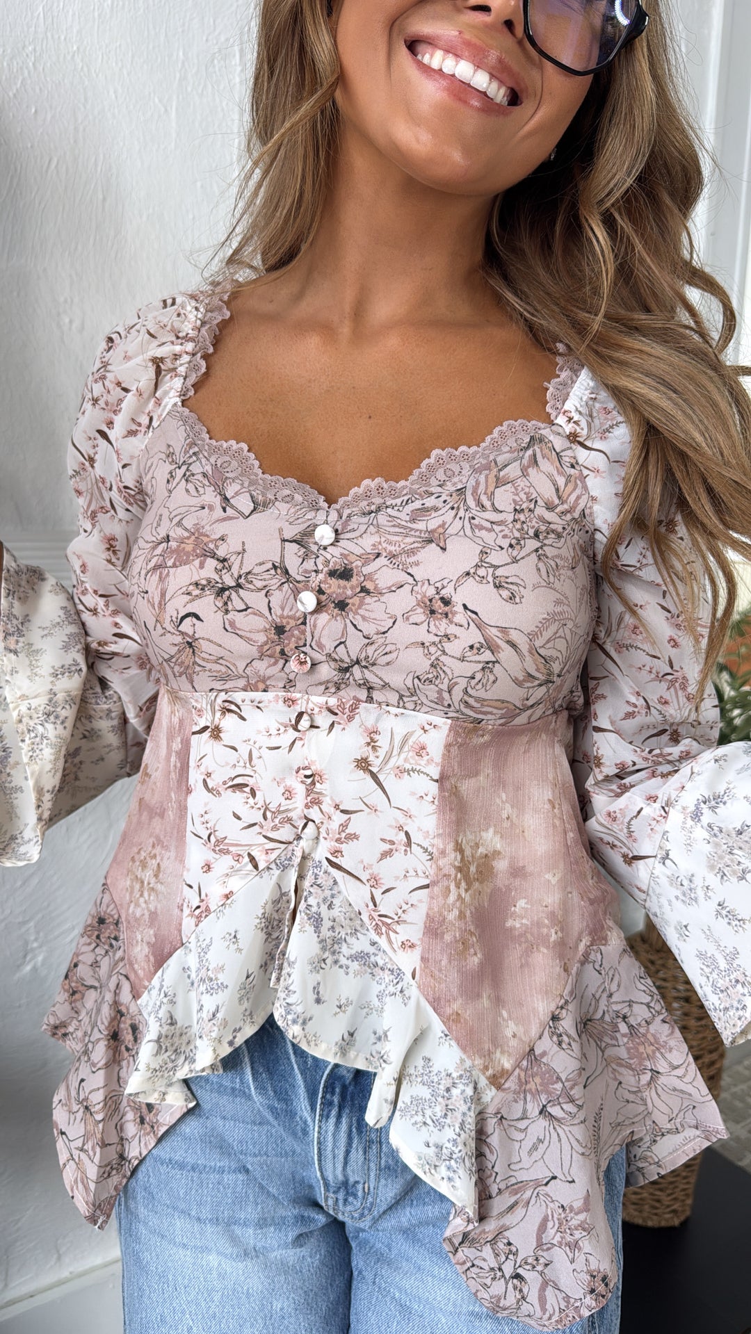 ECB Exclusive: Floral Fields Textured Baby Doll Blouse