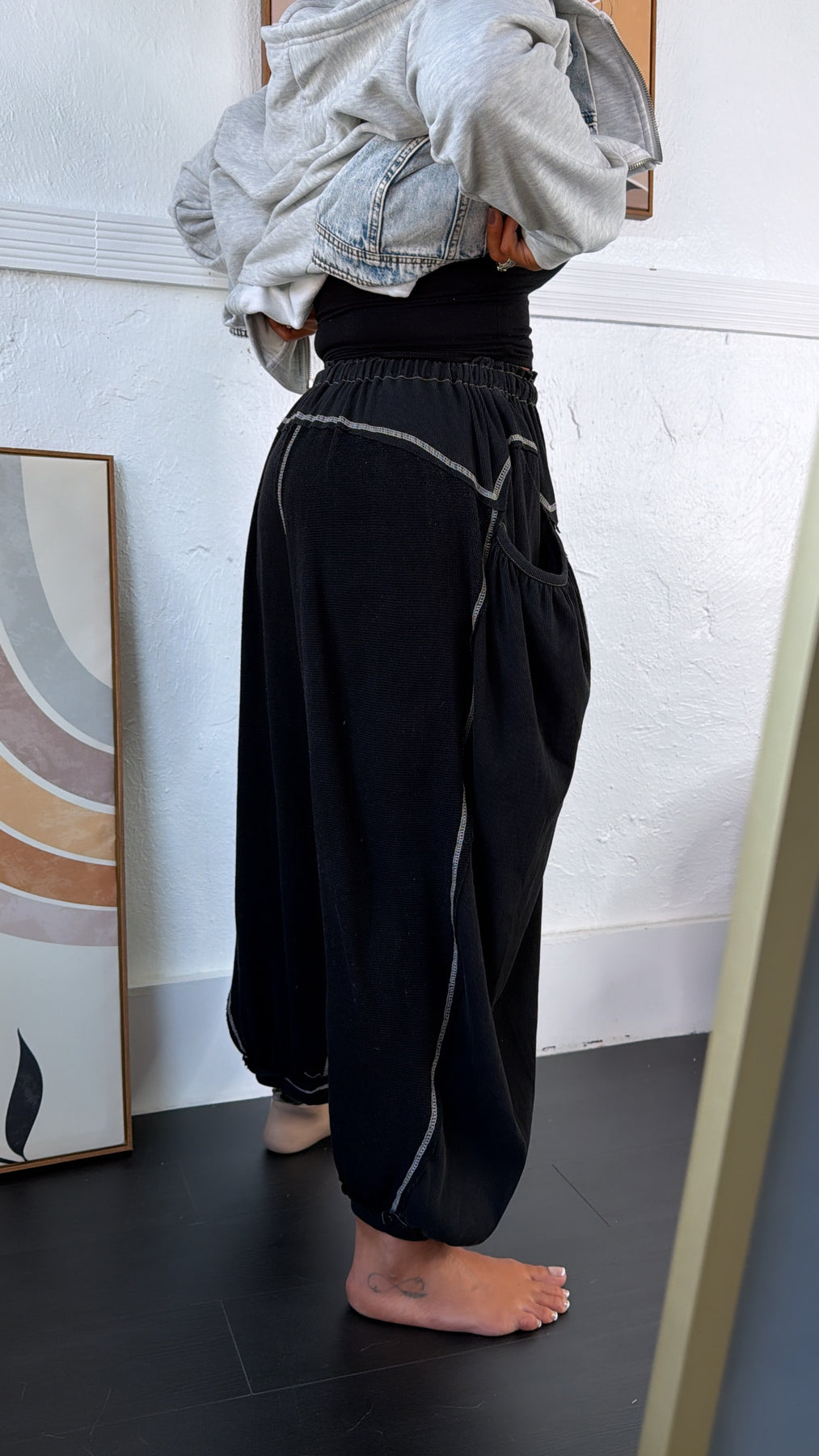 Meet the joggers that redefine casual comfort. The City Line Joggers feature a soft, lightweight knit with unique exposed seam details that give them a modern, street-inspired edge. Designed with a relaxed, wide leg silhouette that tapers into cinched elastic cuffs, these joggers bring effortless cool to your everyday style.