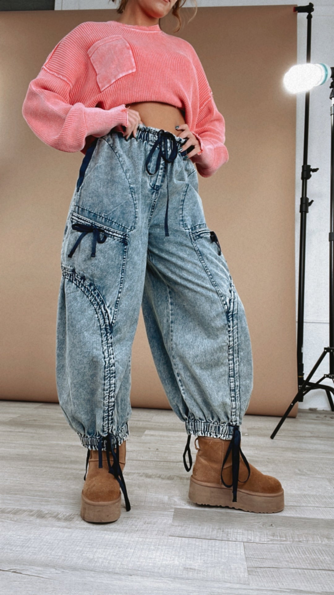 For The Love Of Floral Embroidered Denim Jogger, Oatmilk