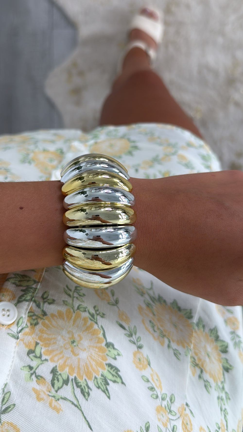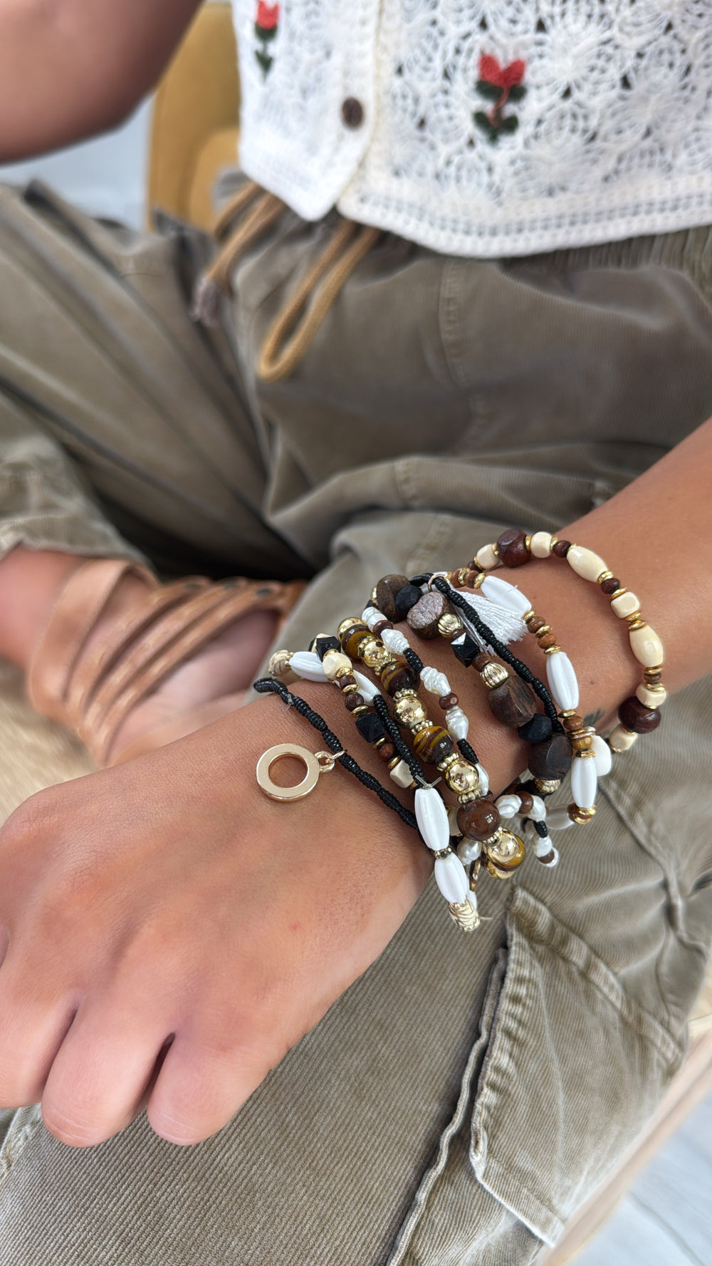 Drexen Wooden Bracelet Stack, Natural/Gold
