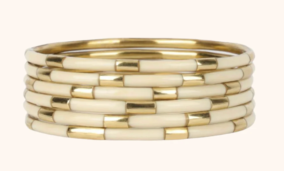 BuDhaGirl: Champagne All Weather Bangle (Set of 6)- Serenity Prayer