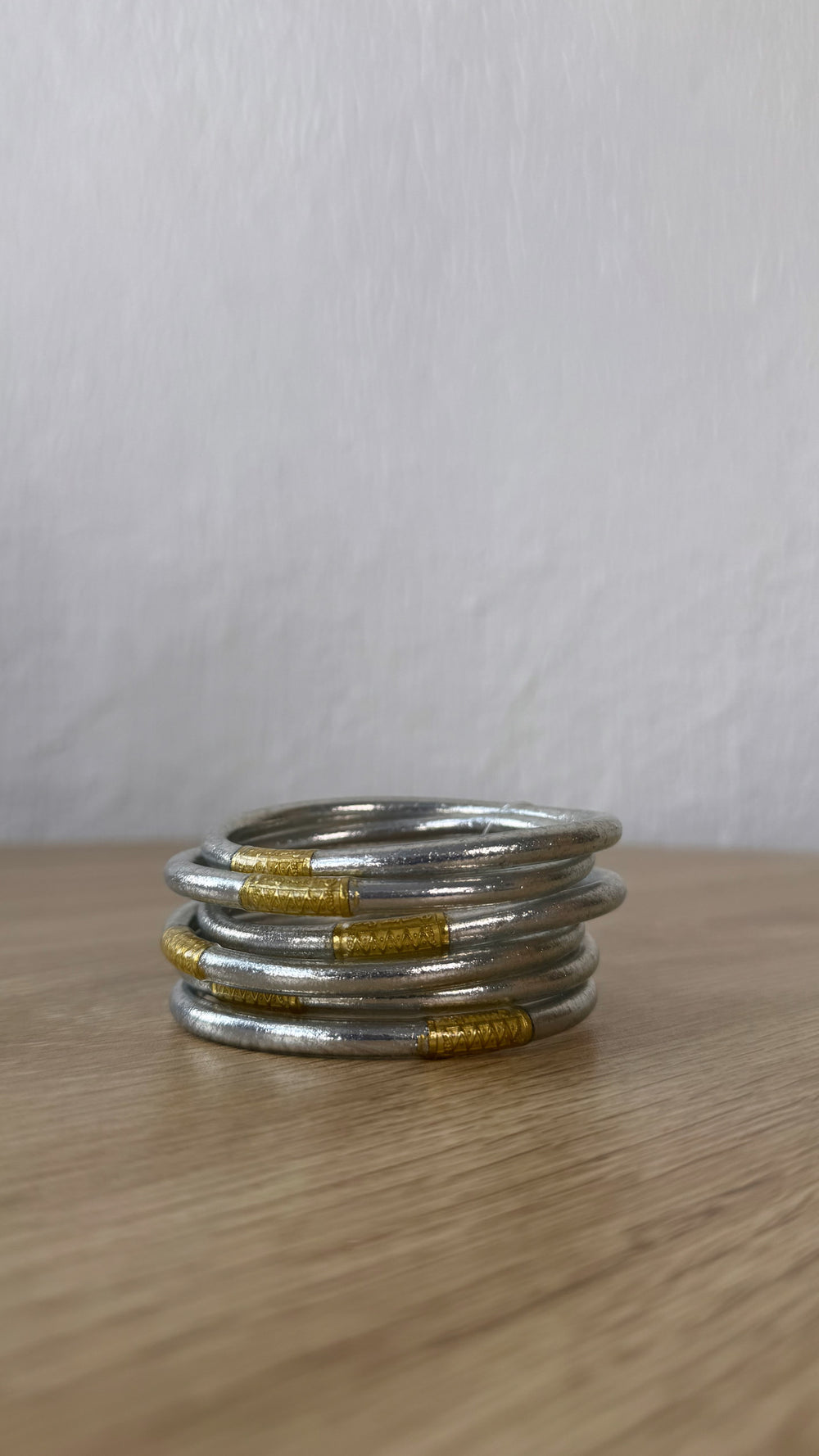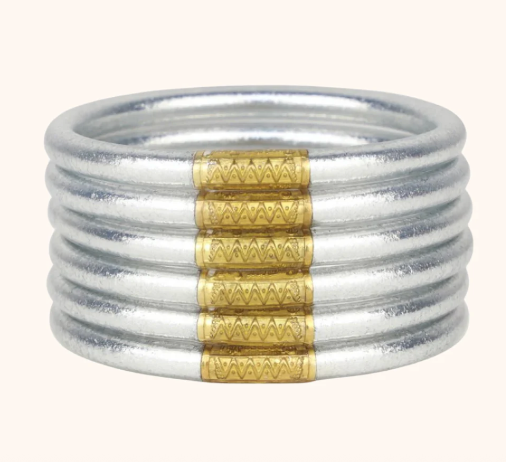 BuDhaGirl: Silver All Weather Bangle (Set of 6)- Serenity Prayer