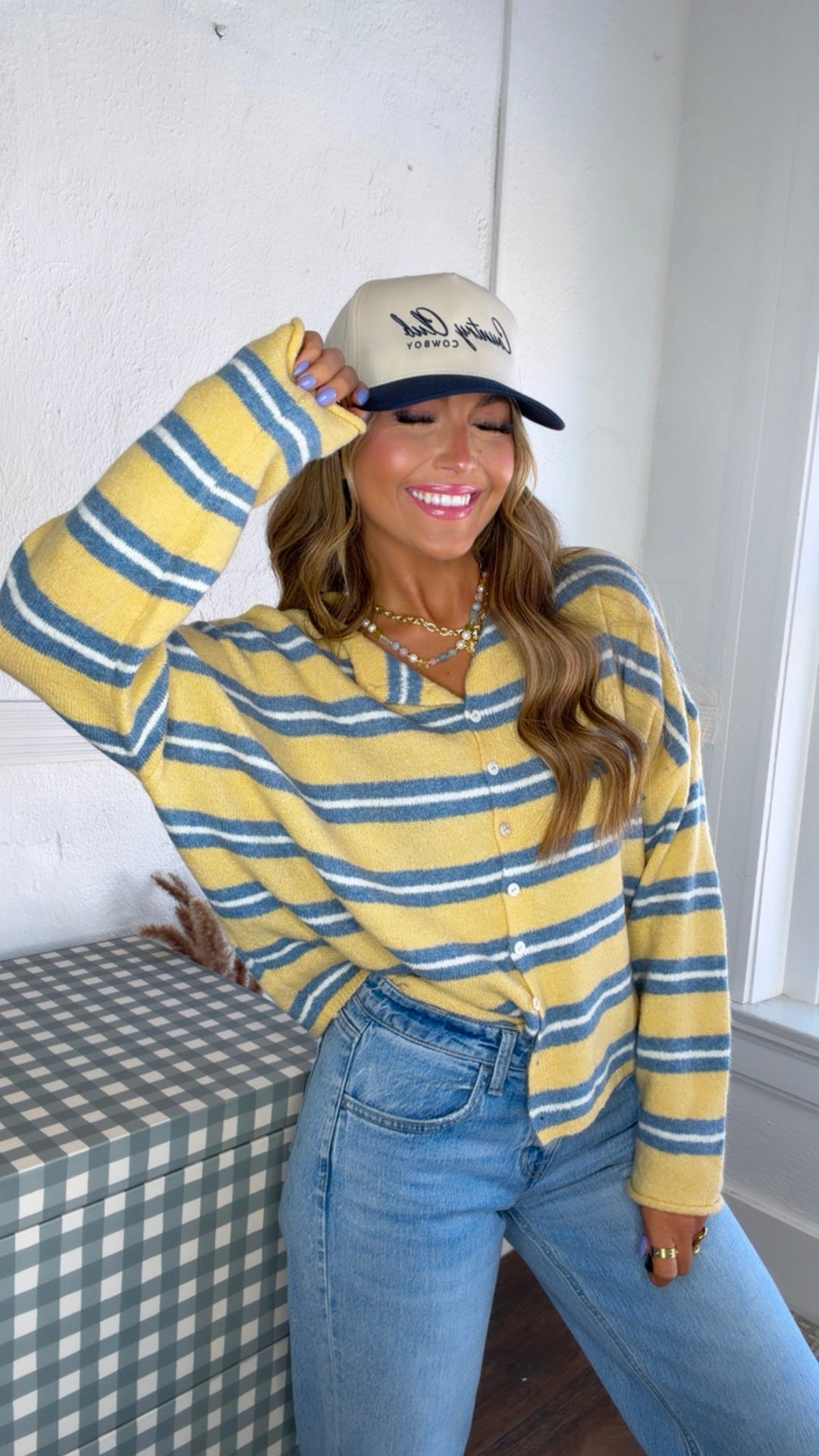 Ocean Stitch Knit Cardigan, Yellow Multi
