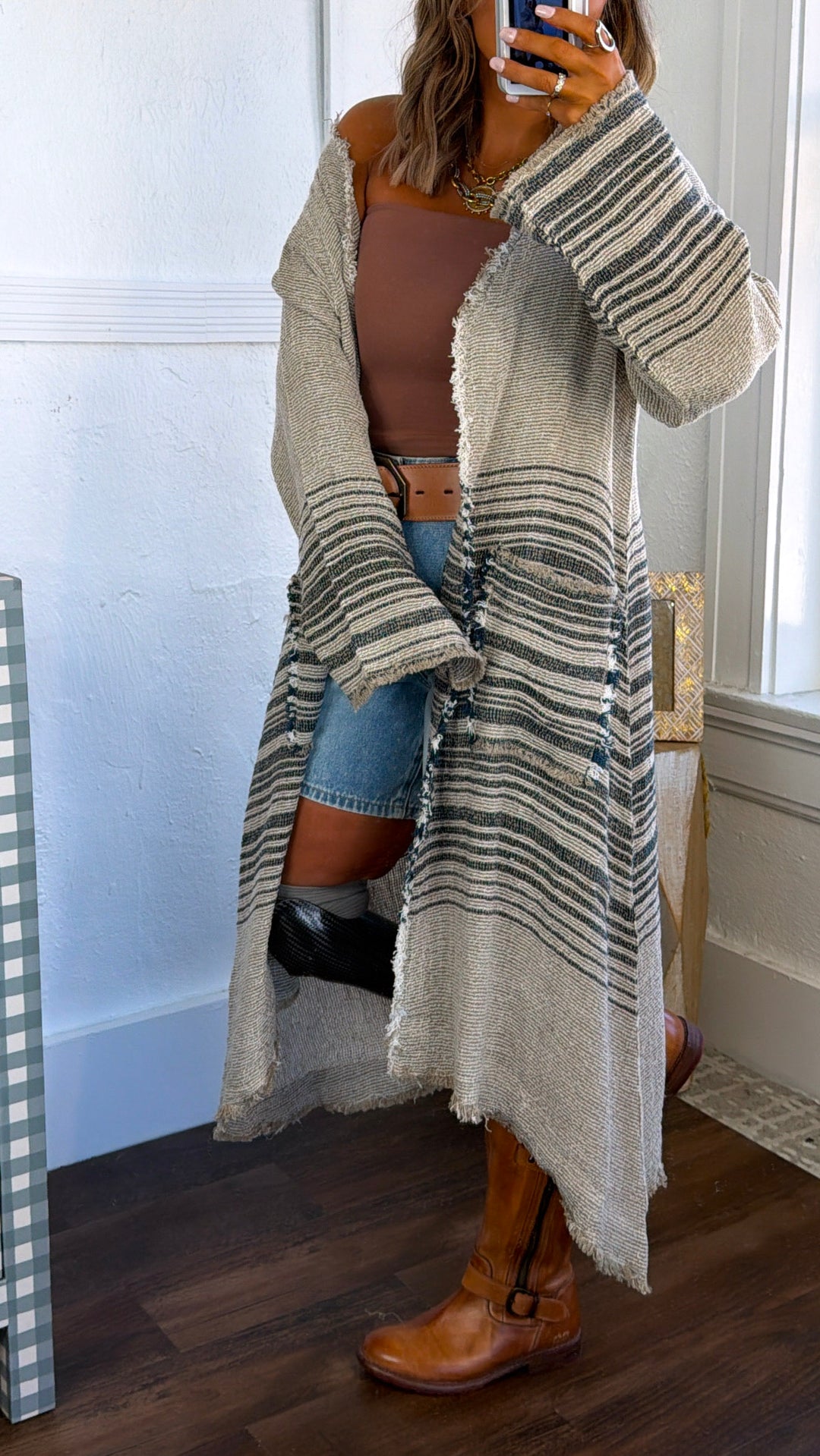 Piper Stripe Cardigan, Cream/Taupe
