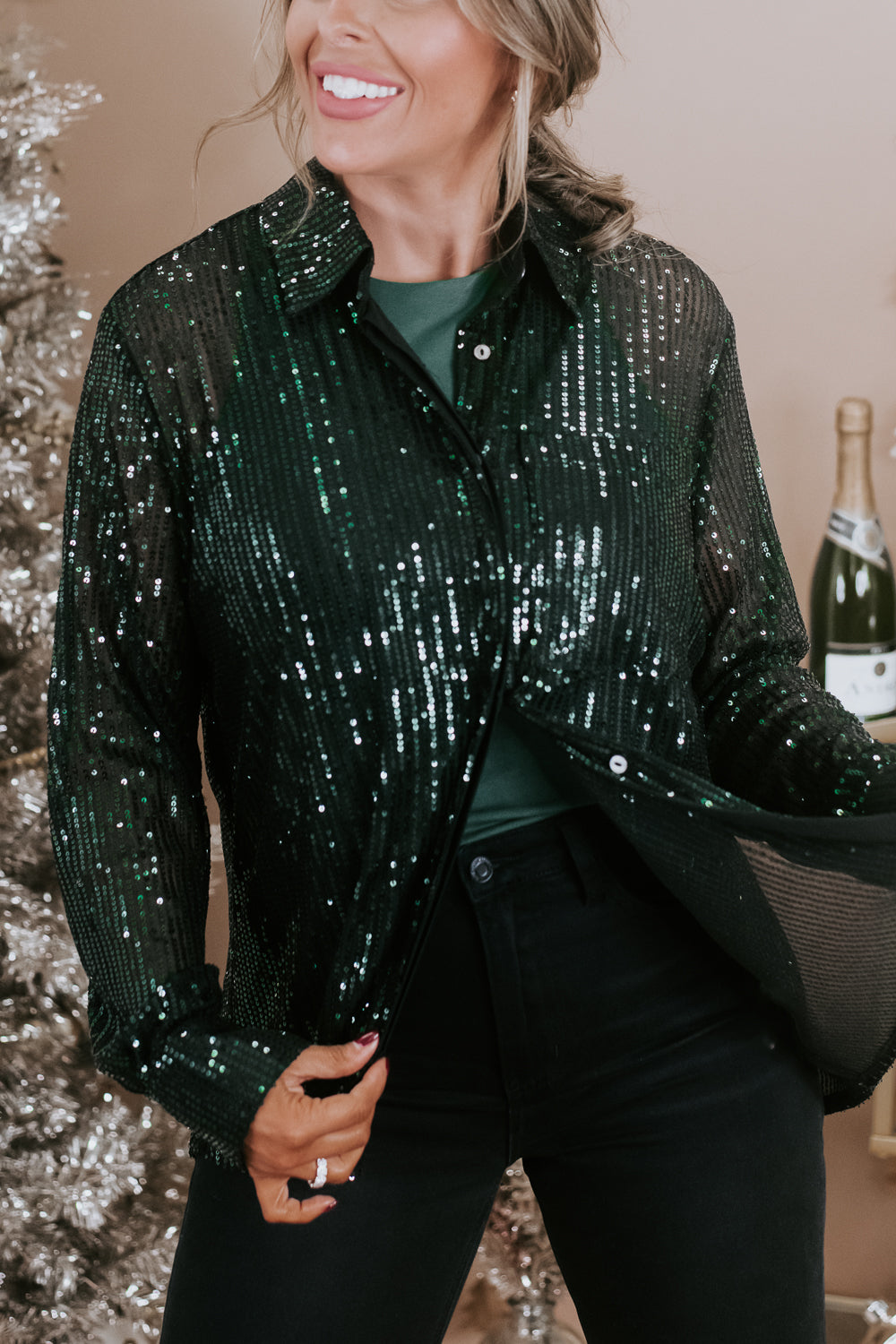 More Cheer Half Puff Sleeve Sequin Top, Green