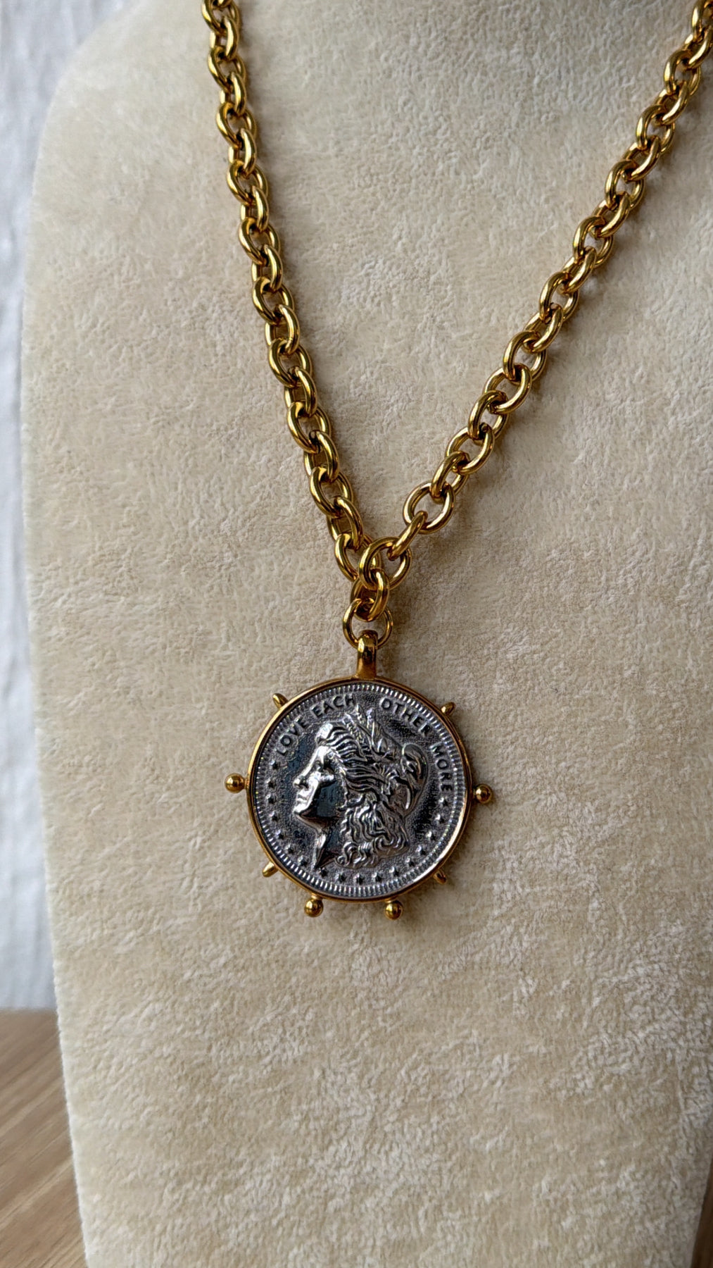 Classic with a modern edge, the Two Toned Coin Necklace is a statement piece you’ll reach for again and again. Featuring a bold gold chain paired with a silver-tone coin pendant framed in gold detailing, this necklace brings the perfect mix of vintage charm and contemporary style.