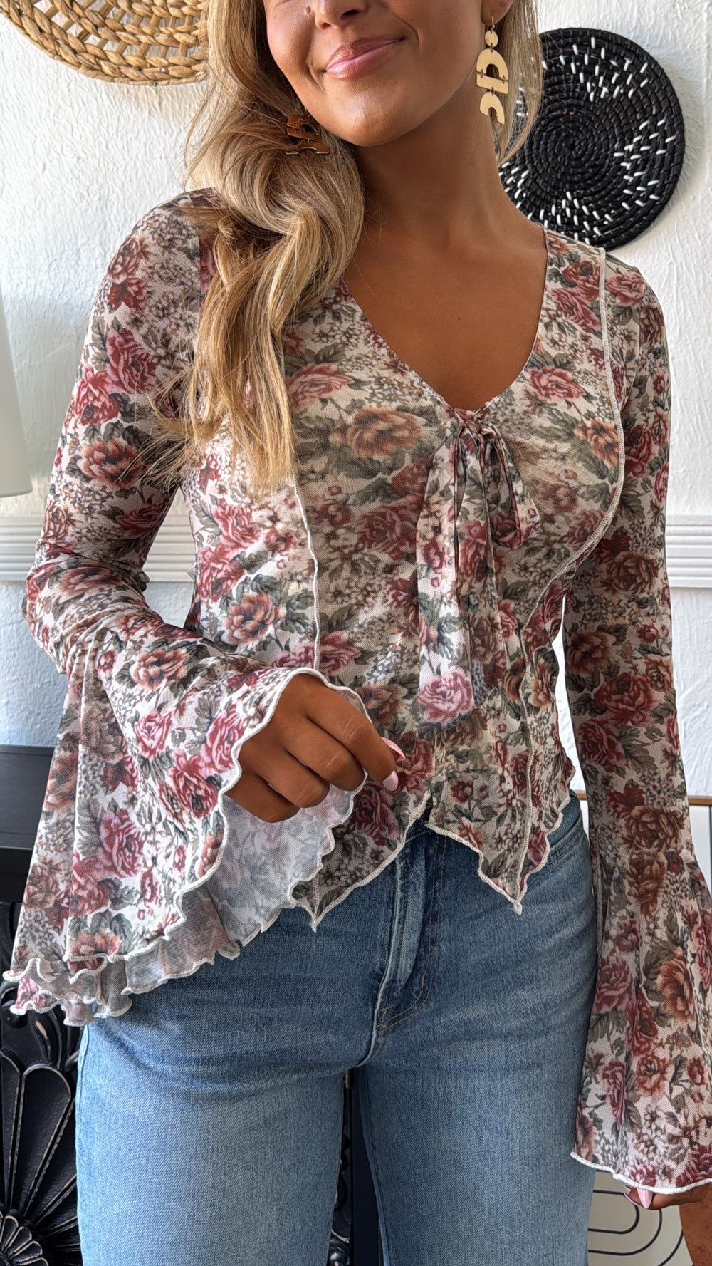Last Floral Kiss Tied Top, Cream