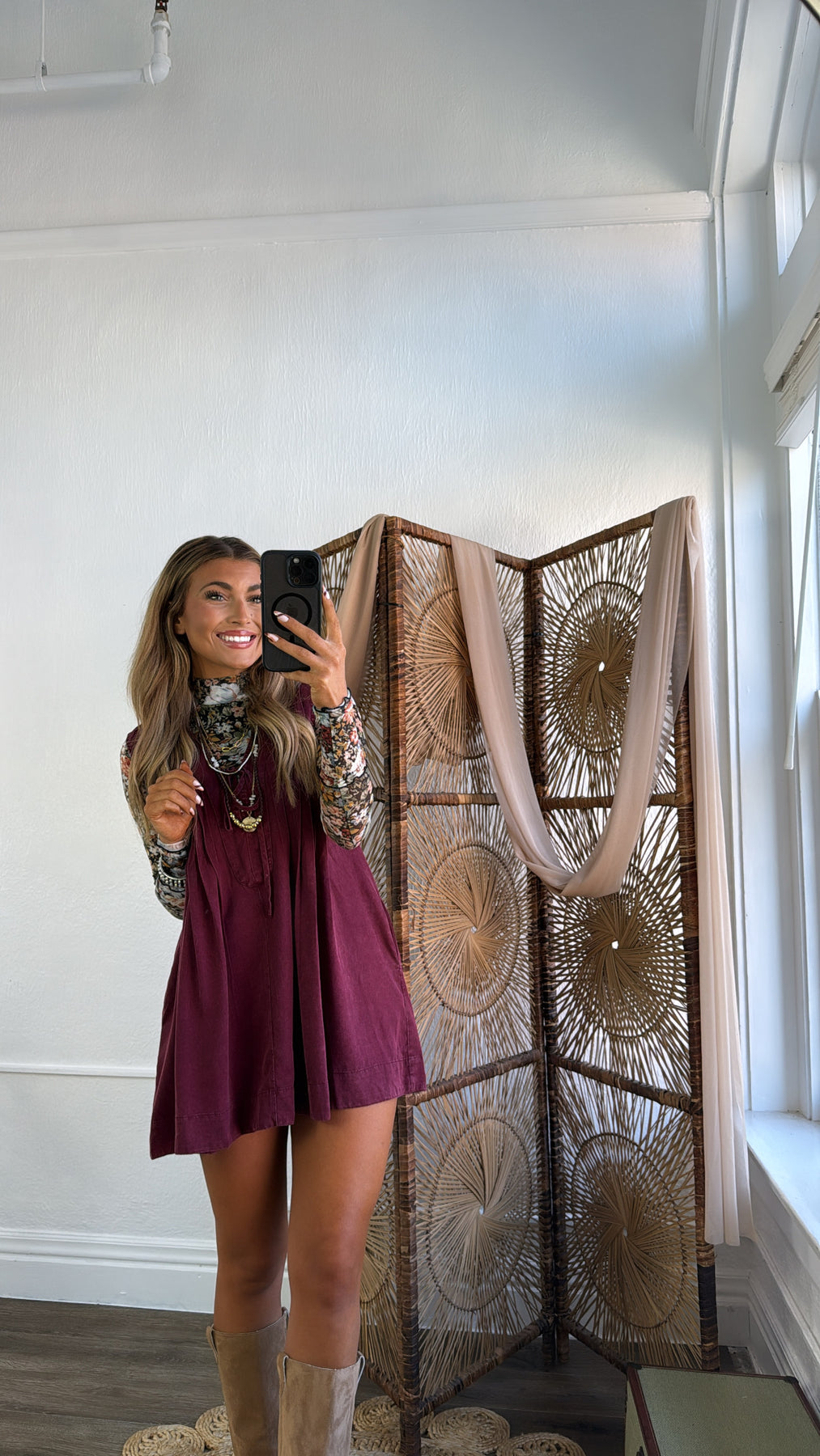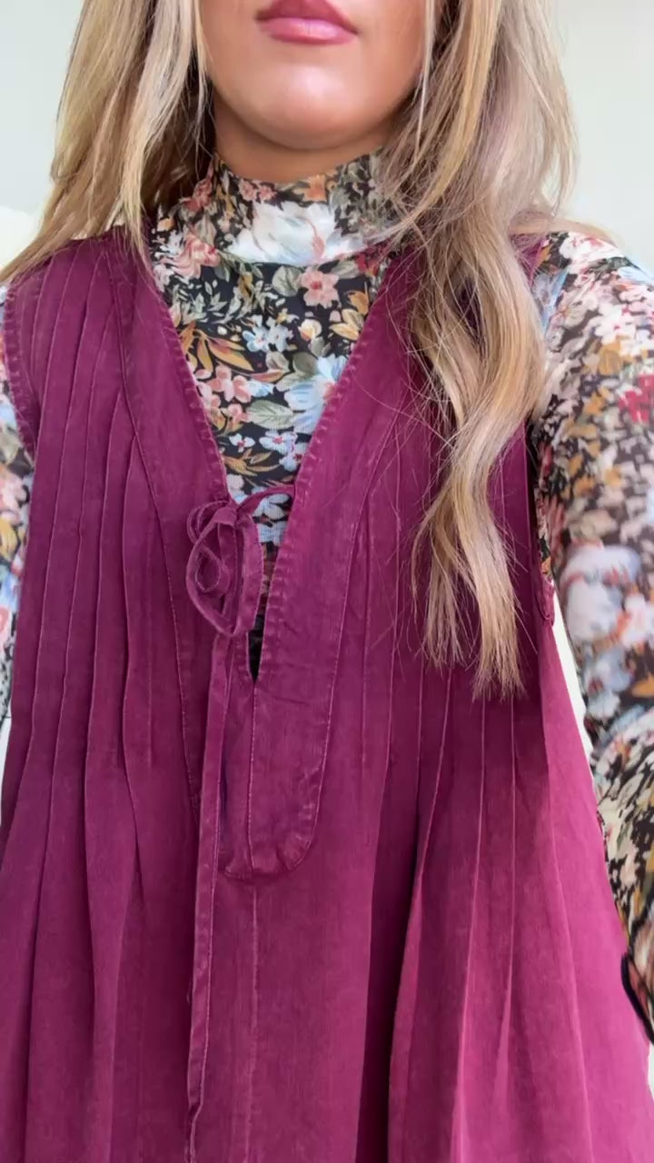 Make a statement in the Amarone Aura Pin Tuck Detailed Dress, perfect for fall pictures, an outing with the girls, or the pumpkin patch. The deep V-neck bodice creates a flattering silhouette, while the front tie adds an elegant touch. The ribbed fabric embodies fall and looks fabulous paired with a printed under layer.