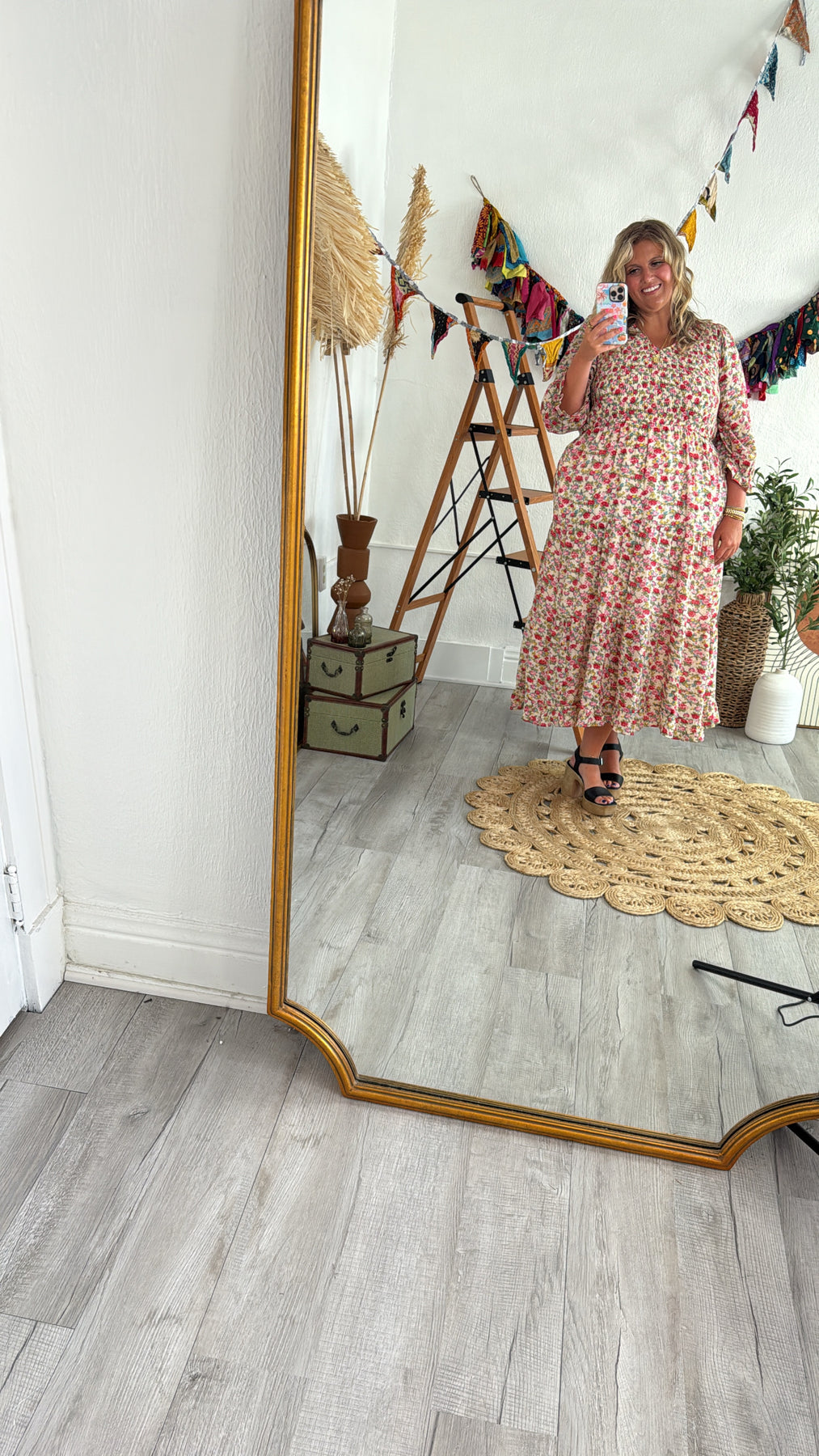 Step into the season in full bloom with this effortlessly romantic maxi dress. Featuring a flattering smocked bodice and soft floral print, this flowy silhouette is perfect for everything from weekend brunch to outdoor weddings.