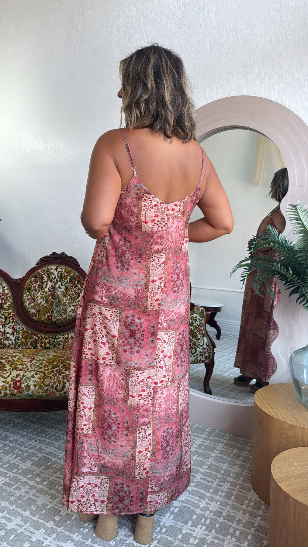 Whimsical and effortlessly breezy, the Mulberry Quilt Maxi Dress brings vintage charm with a modern twist. Featuring a flowy tunic silhouette, delicate spaghetti straps, and side pockets, this dress is made for sunny strolls, market days, and everything in between.