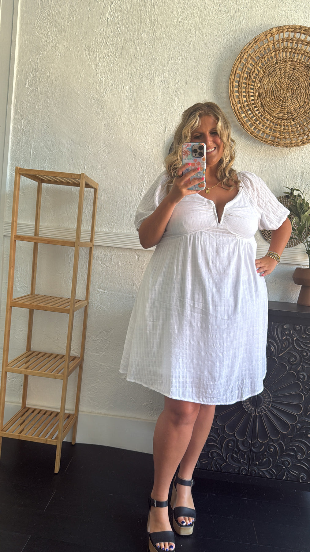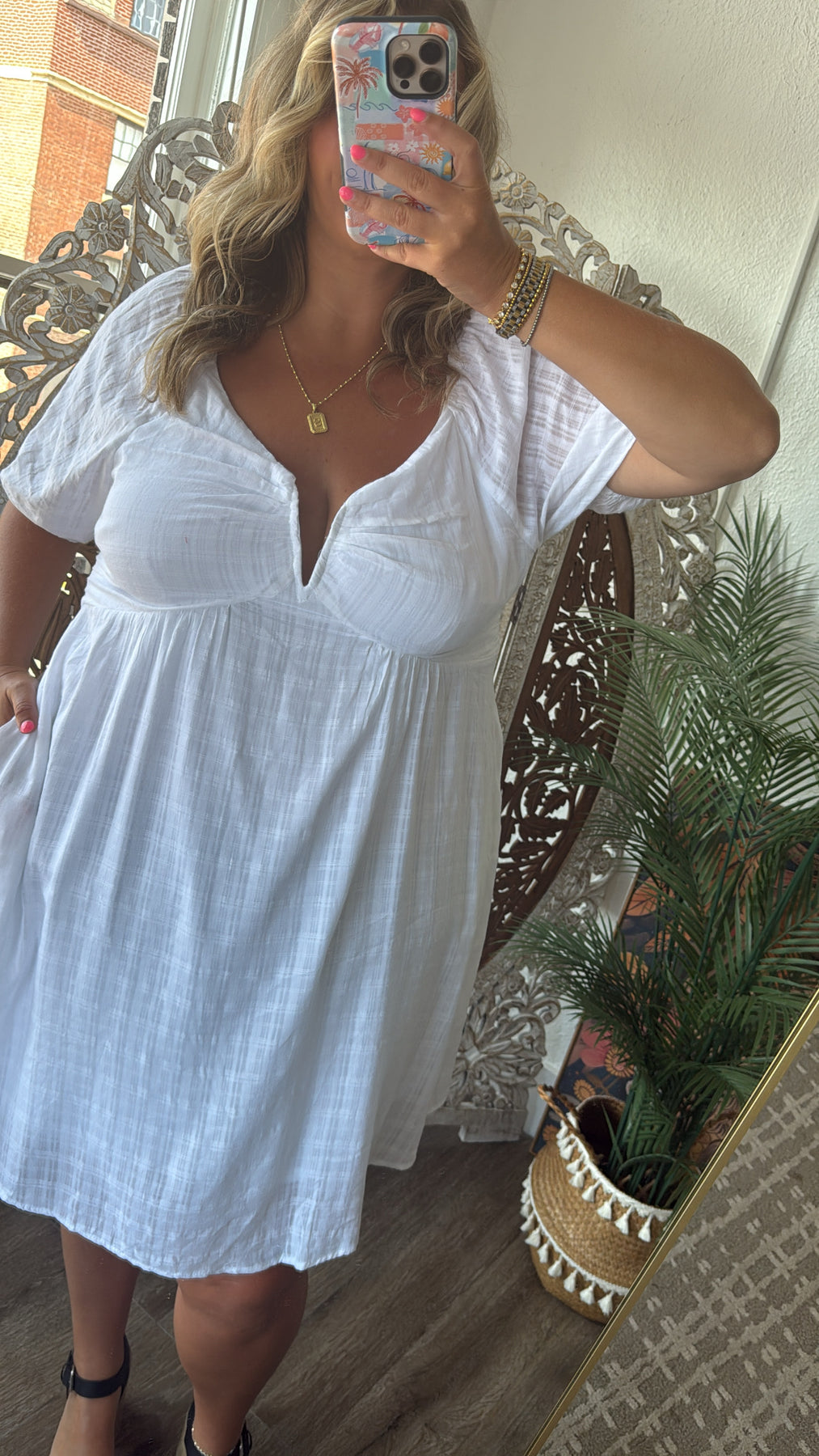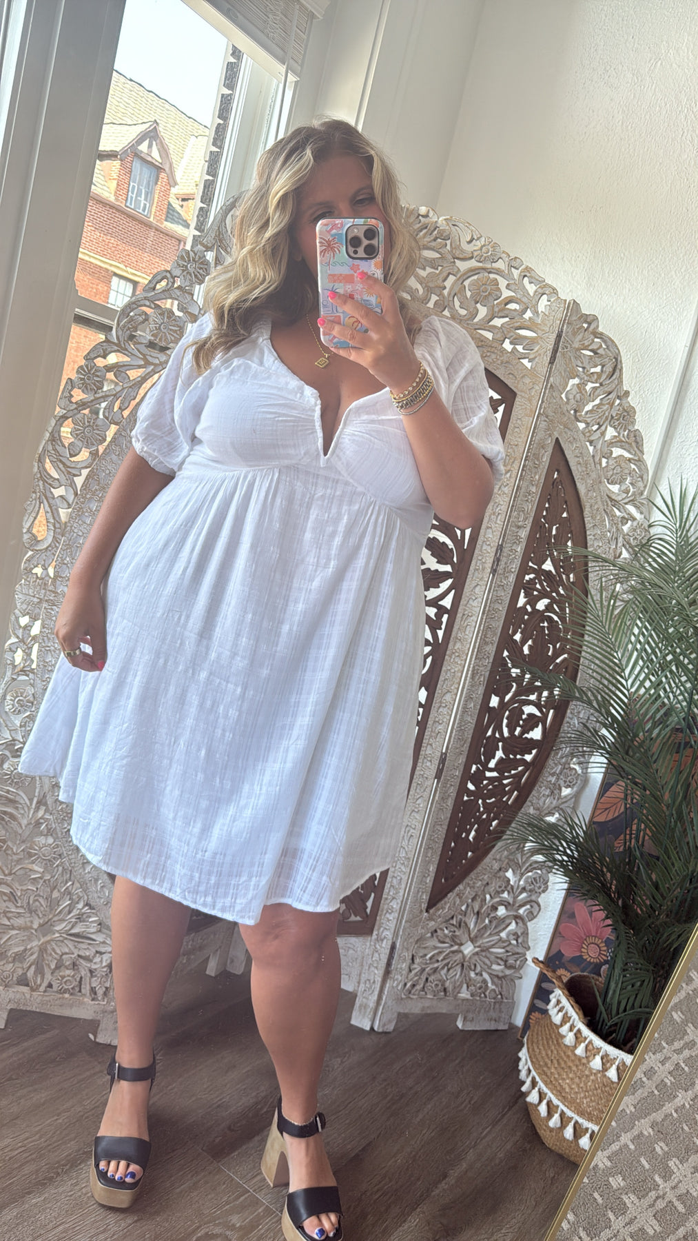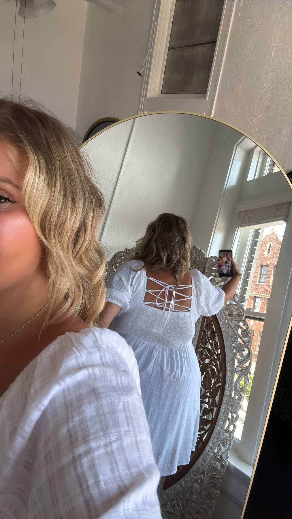 Radiate pure elegance in this mini dress. The True Beauty Bubble Sleeve Mini Dress features a structured V-neckline, smocked lace-up back detailing, short puff-style sleeves, and functional side pockets.
