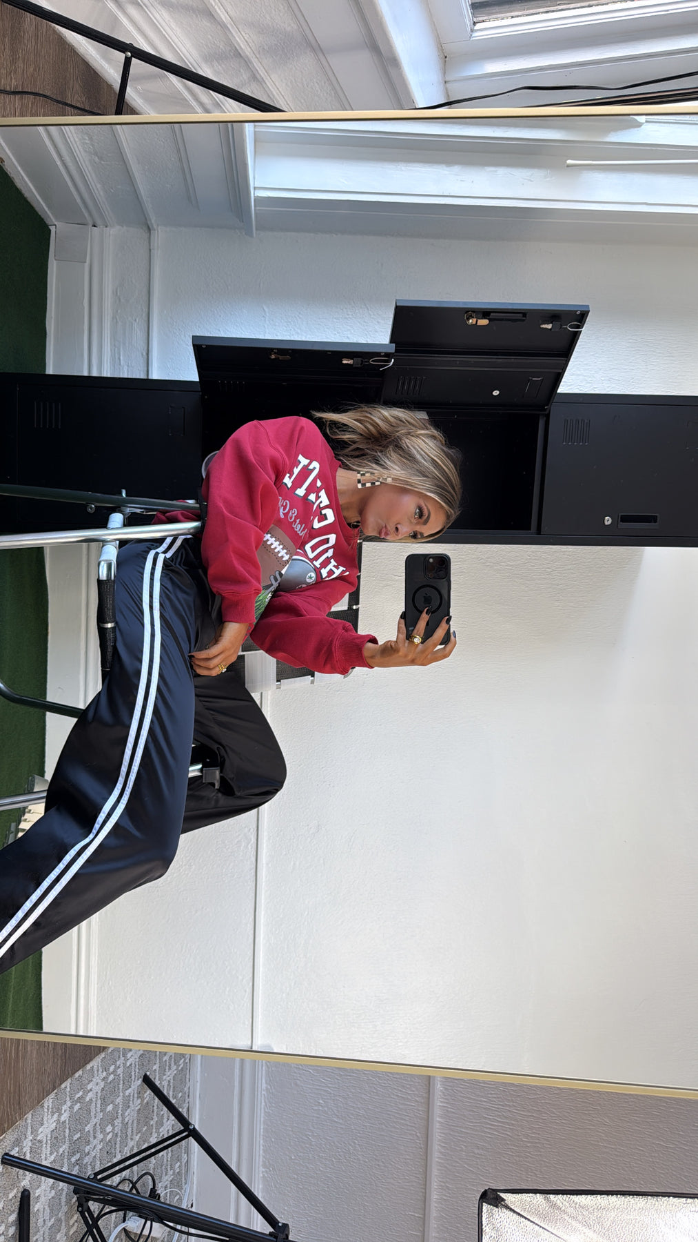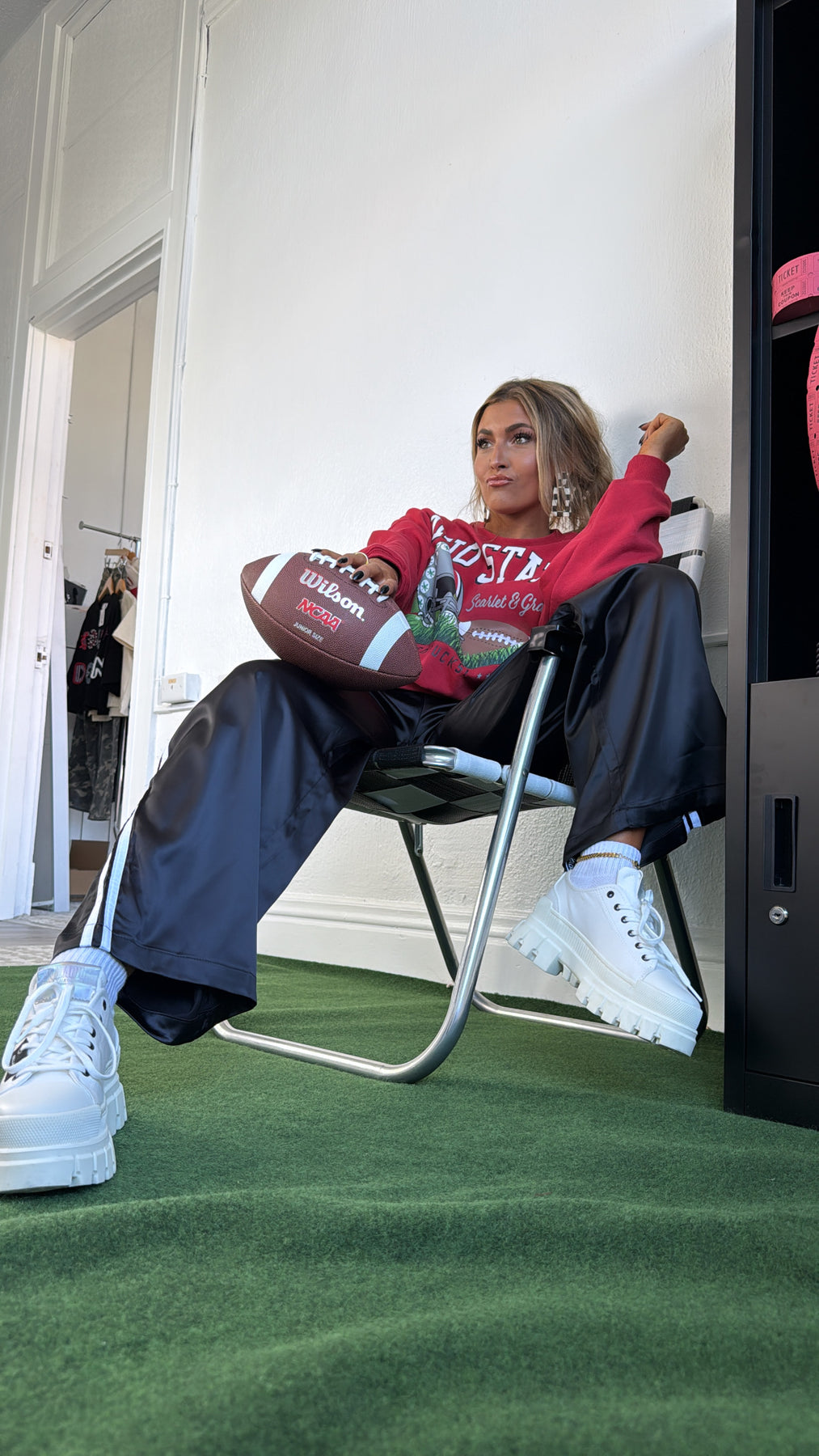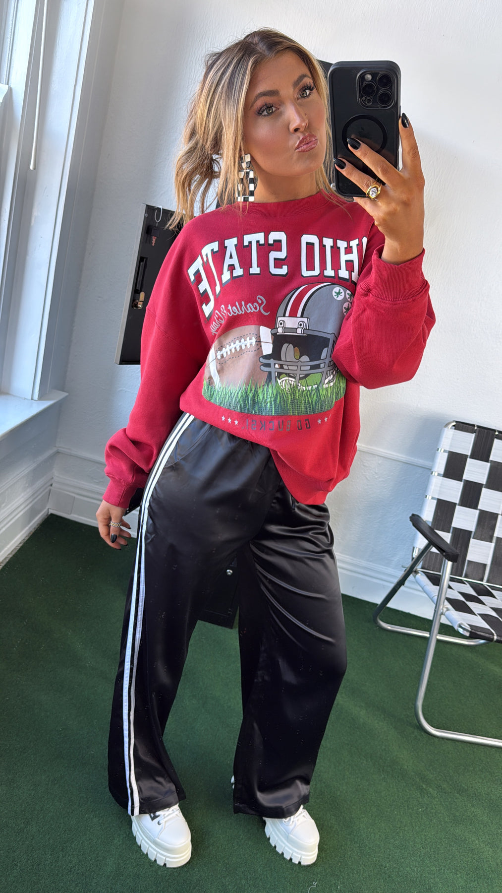 The Buckeye Crewneck in Red. A game day essential for Ohio football fans, this crewneck is essential to create the ultimate College game day look.