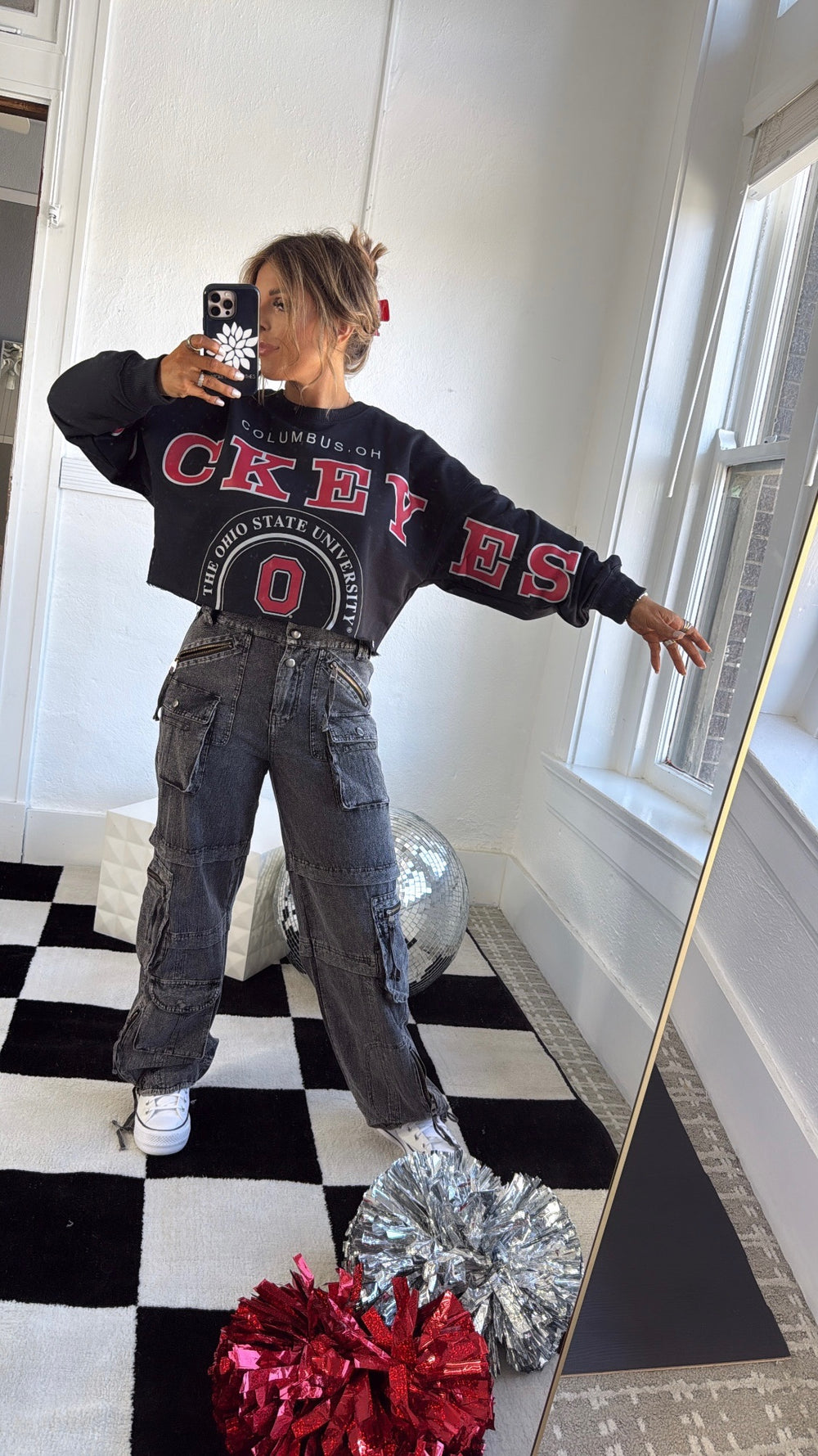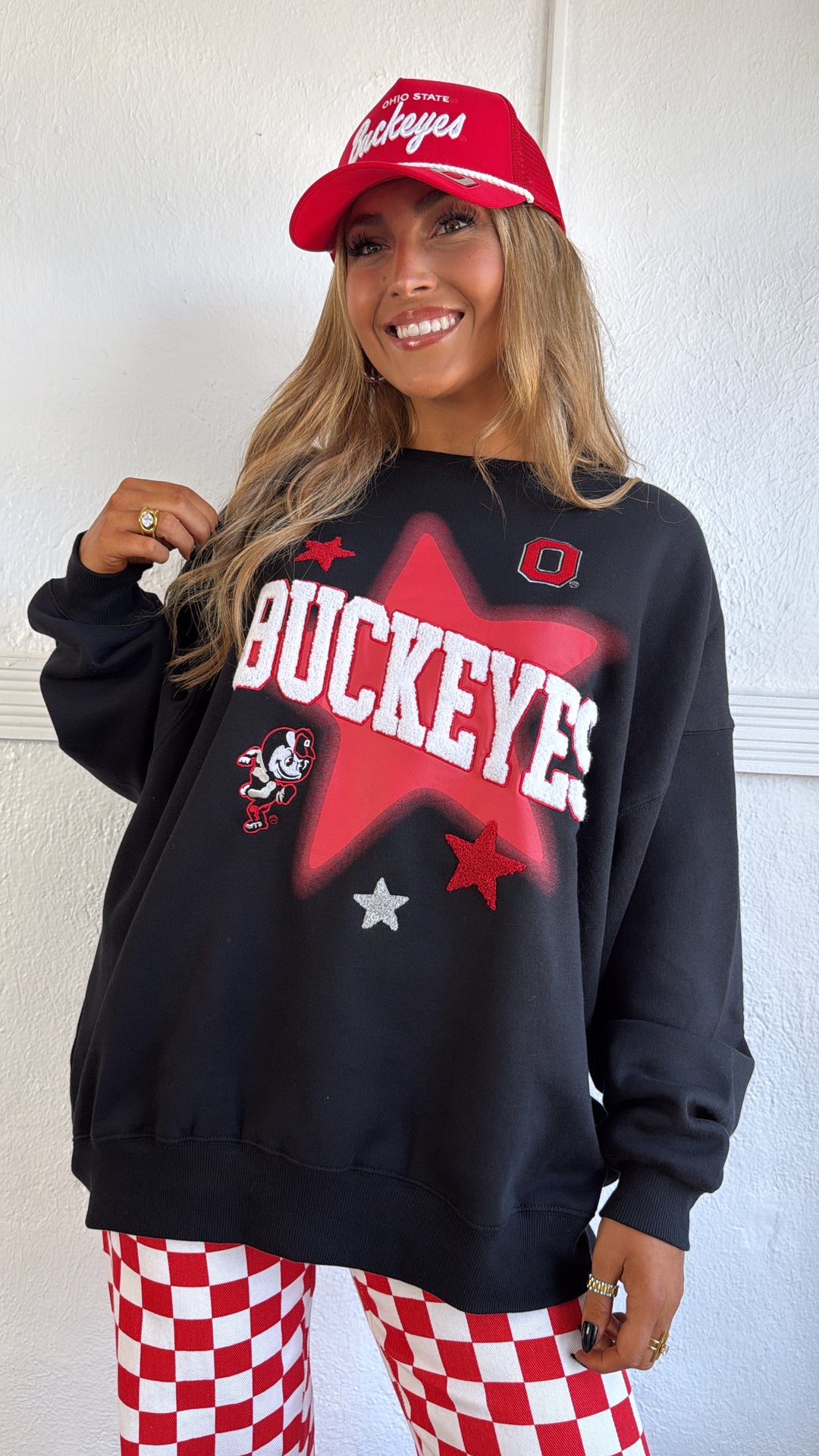 Touchdown Metallic Short Puff Sleeve Sweater, Black/Gold