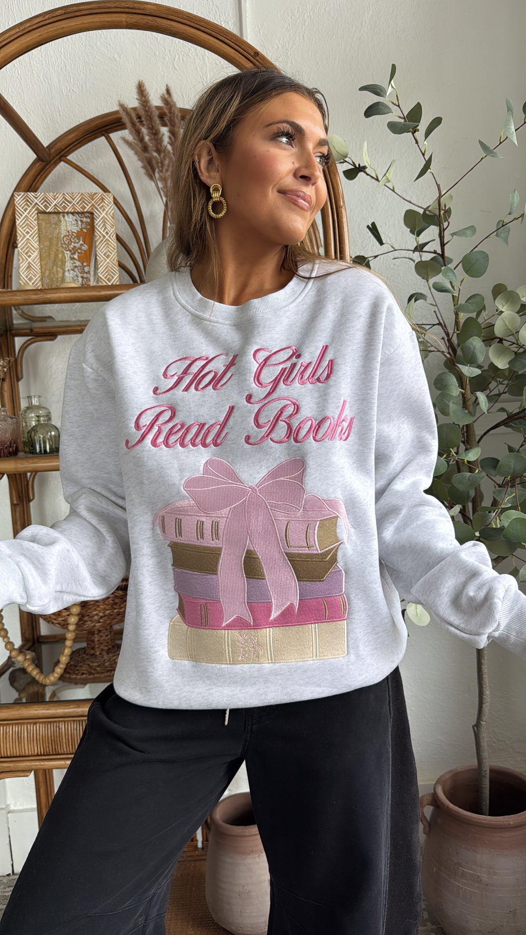 Happy Camp3r: Hot girls Read Books Crewneck, Lt. Heather