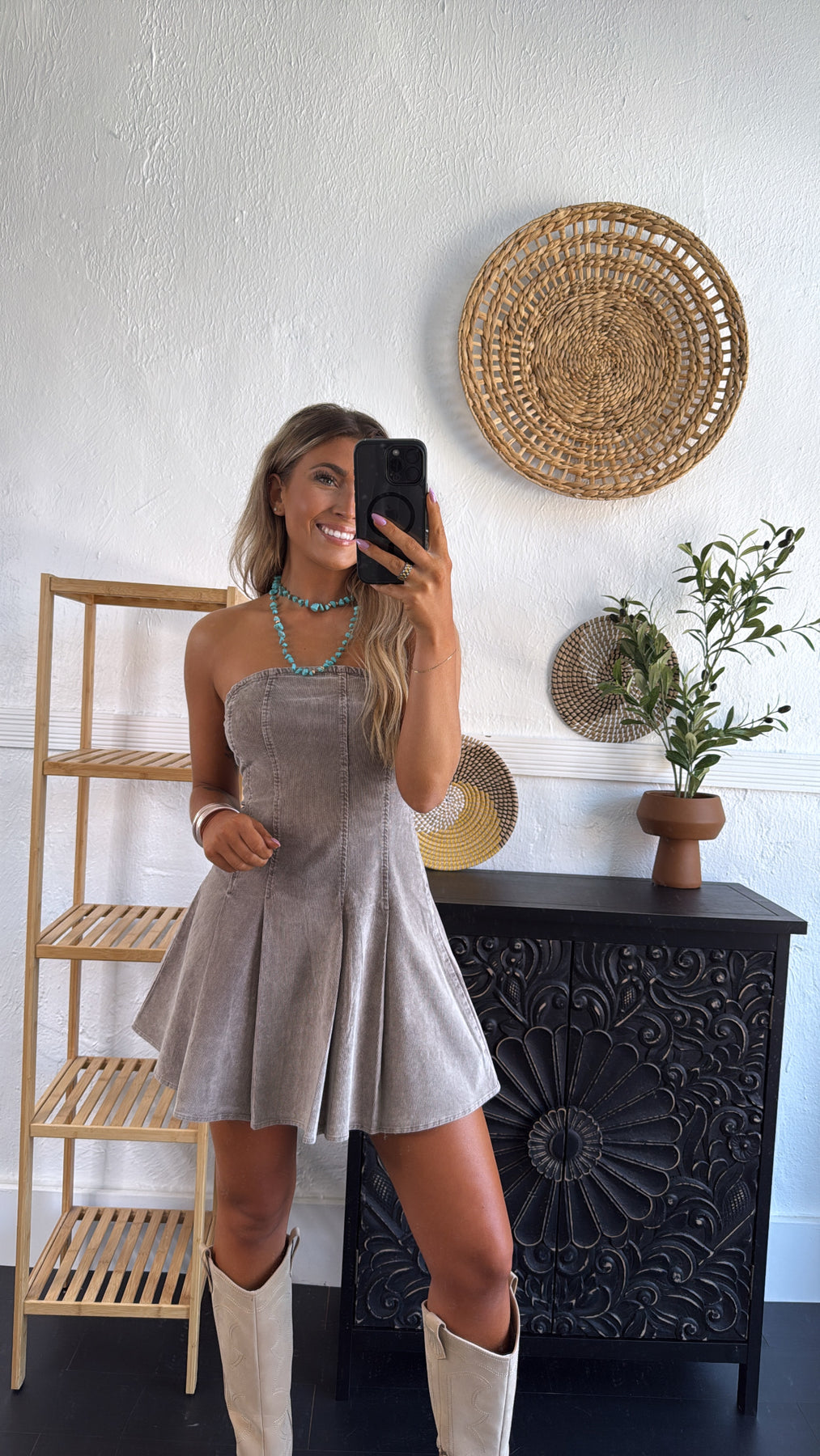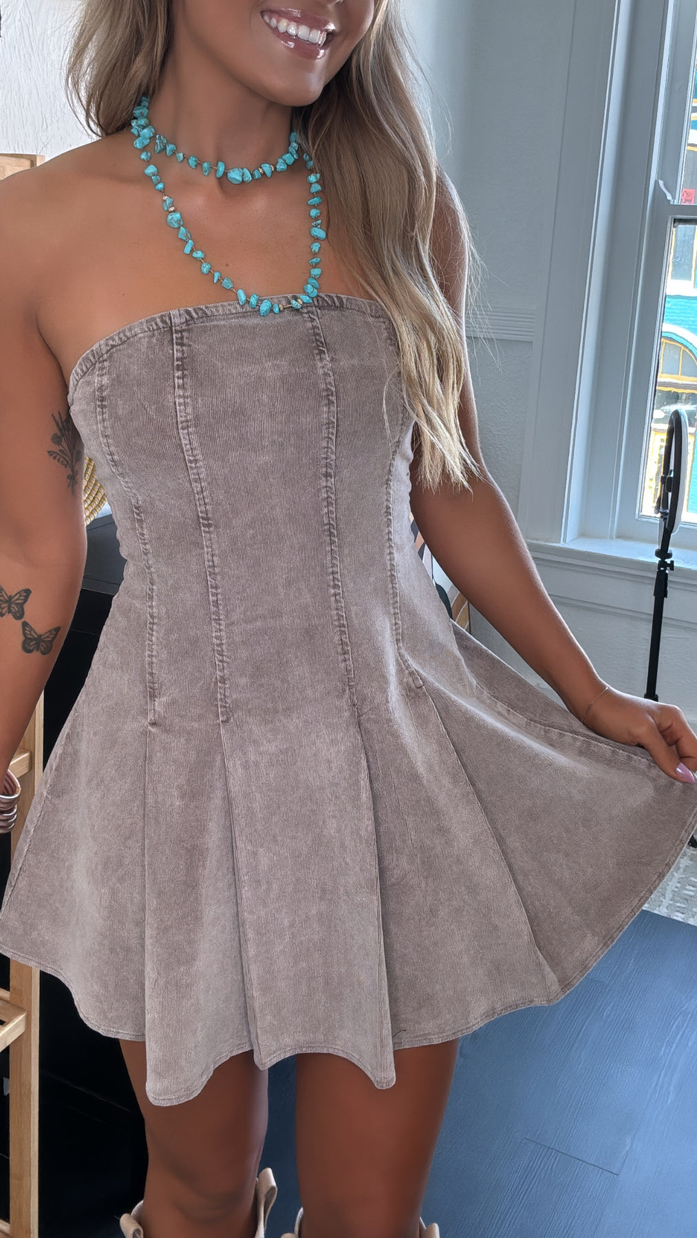 Embrace elegance with a touch of edge in the City Streets Mini Dress. This strapless stunner features a structured bodice and a flared skirt that strikes the perfect balance between playful and polished!