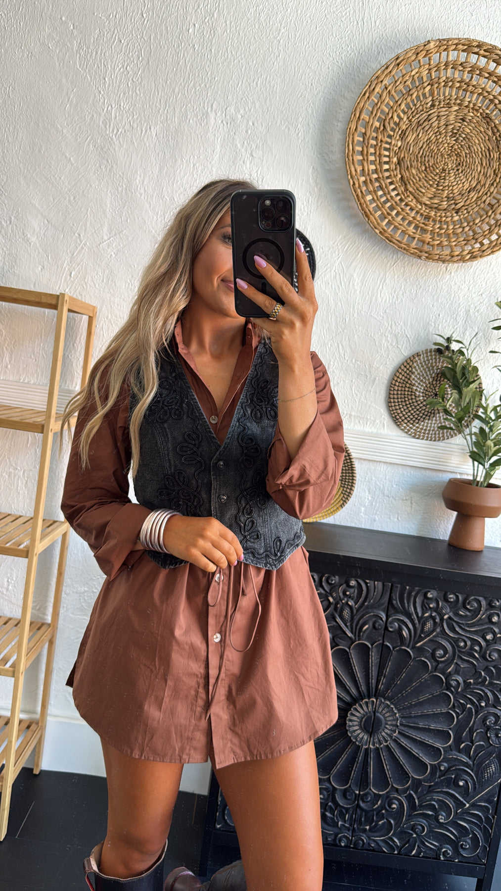 Effortlessly chic and tailored with a twist, the Martini Hour Button Down Romper Dress is your go-to for stylish versatility. Designed to look like a layered shirt dress, this woven cotton piece offers the polished feel of a button-down with the comfort of a romper underneath!