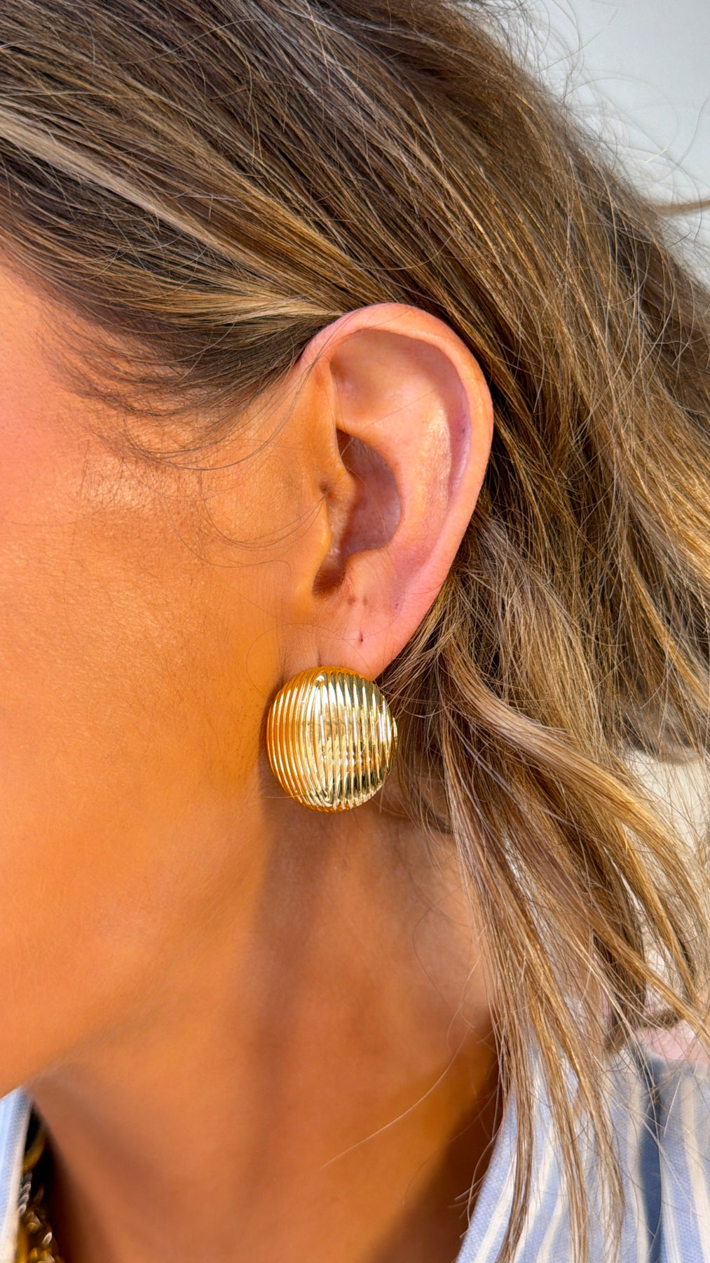 Timeless with a vintage-inspired edge, the Golden Era Studs bring effortless elegance to any look. Featuring a bold dome silhouette with delicate ridged texture, these gold-tone earrings reflect light beautifully and add a sophisticated statement to both casual and dressy outfits. Their classic design makes them the perfect go-to accessory for everyday shine.