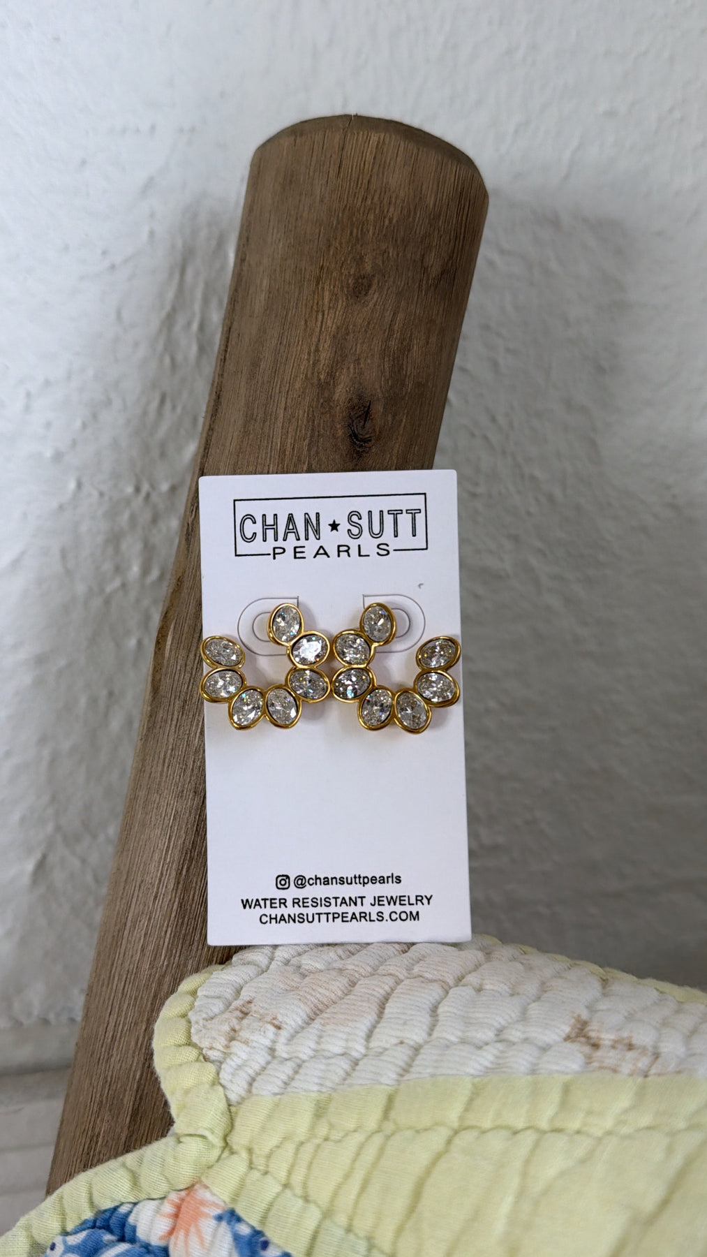 Delicate sparkle with an elegant twist—the Serena Earrings are made to shine without overpowering your look. Featuring a graceful cluster of clear crystals set in a soft gold-tone frame, these beauties add just the right amount of glam for everyday wear or special occasions.