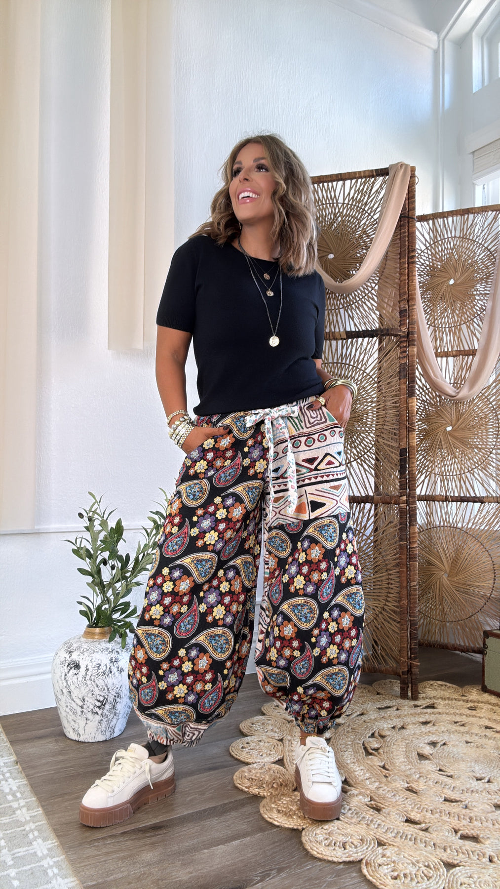Be a standout this season in the Paisley Fields Jogger. These joggers feature a relaxed fit and a wide elastic waistband that provides comfort, while the paisley + floral patchwork details add a touch of whimsy. Perfect for adding a unique pop to your outfit.