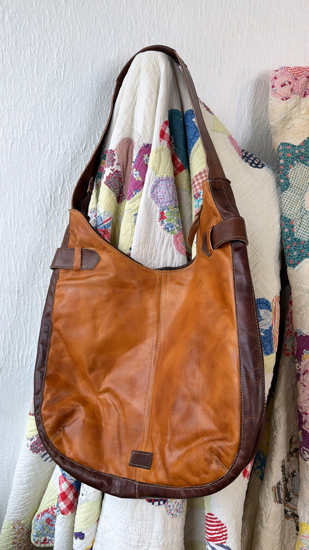 Genuine hand-dyed leather with rich patchwork detail