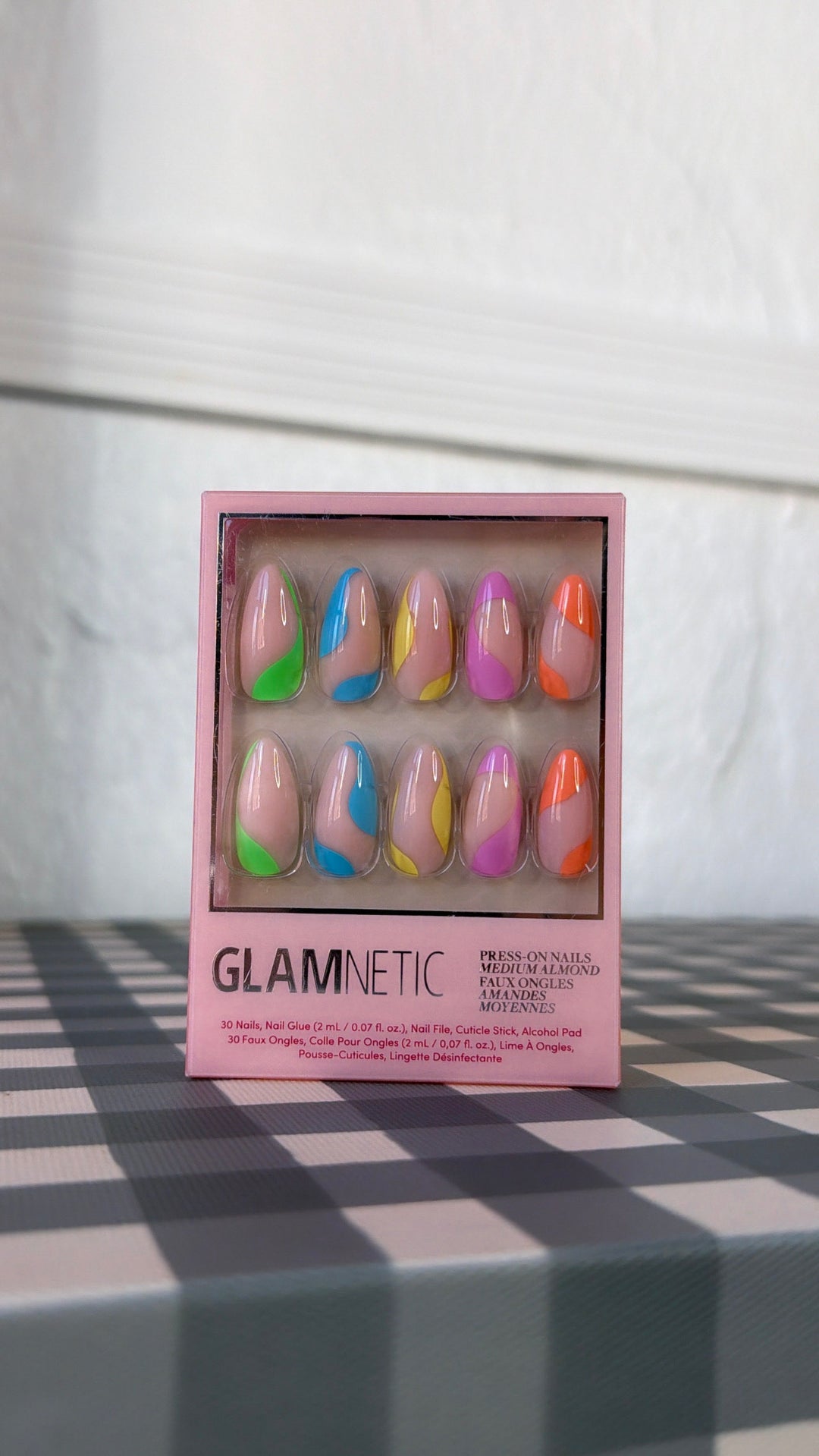 Rainbow Puff Press-On Nails |Medium Almond Multicolor Summer