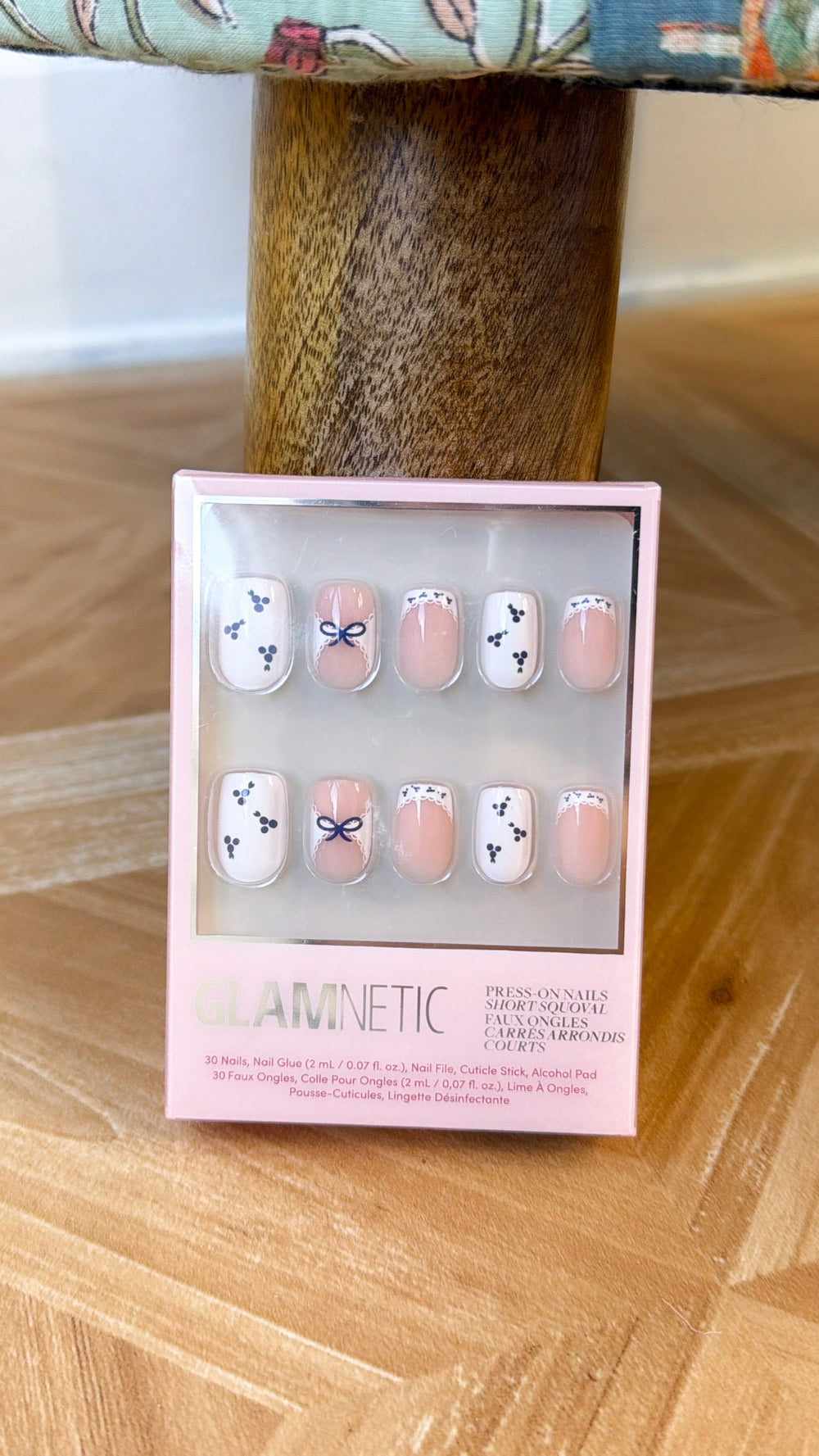 Blue A Kiss Press-On Nails | Short Squoval Valentine Ribbons