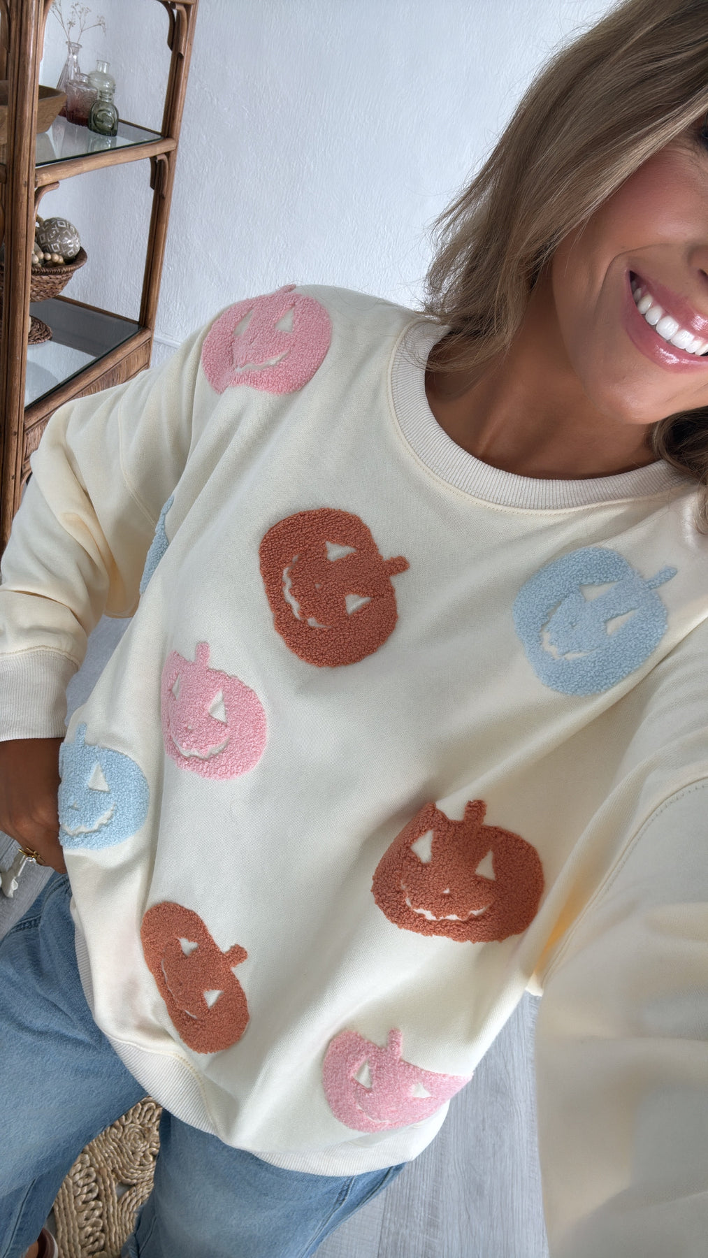 Oversized Pumpkin Embroidered Sweater, Ivory