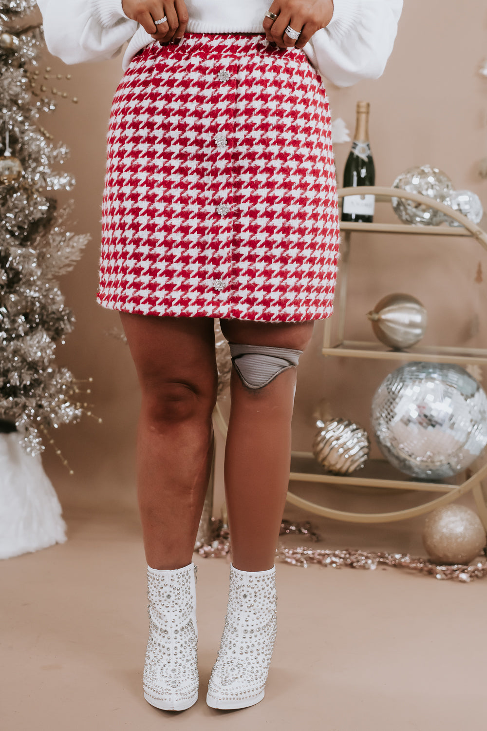Class Act Houndstooth Mini Skirt, Mocha/Black