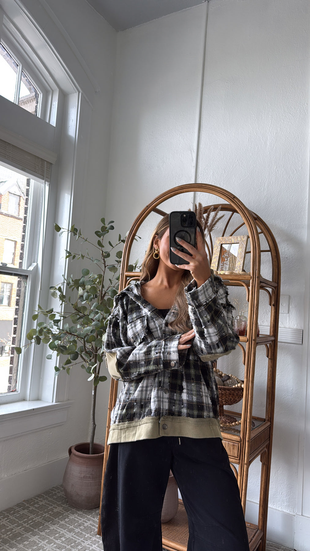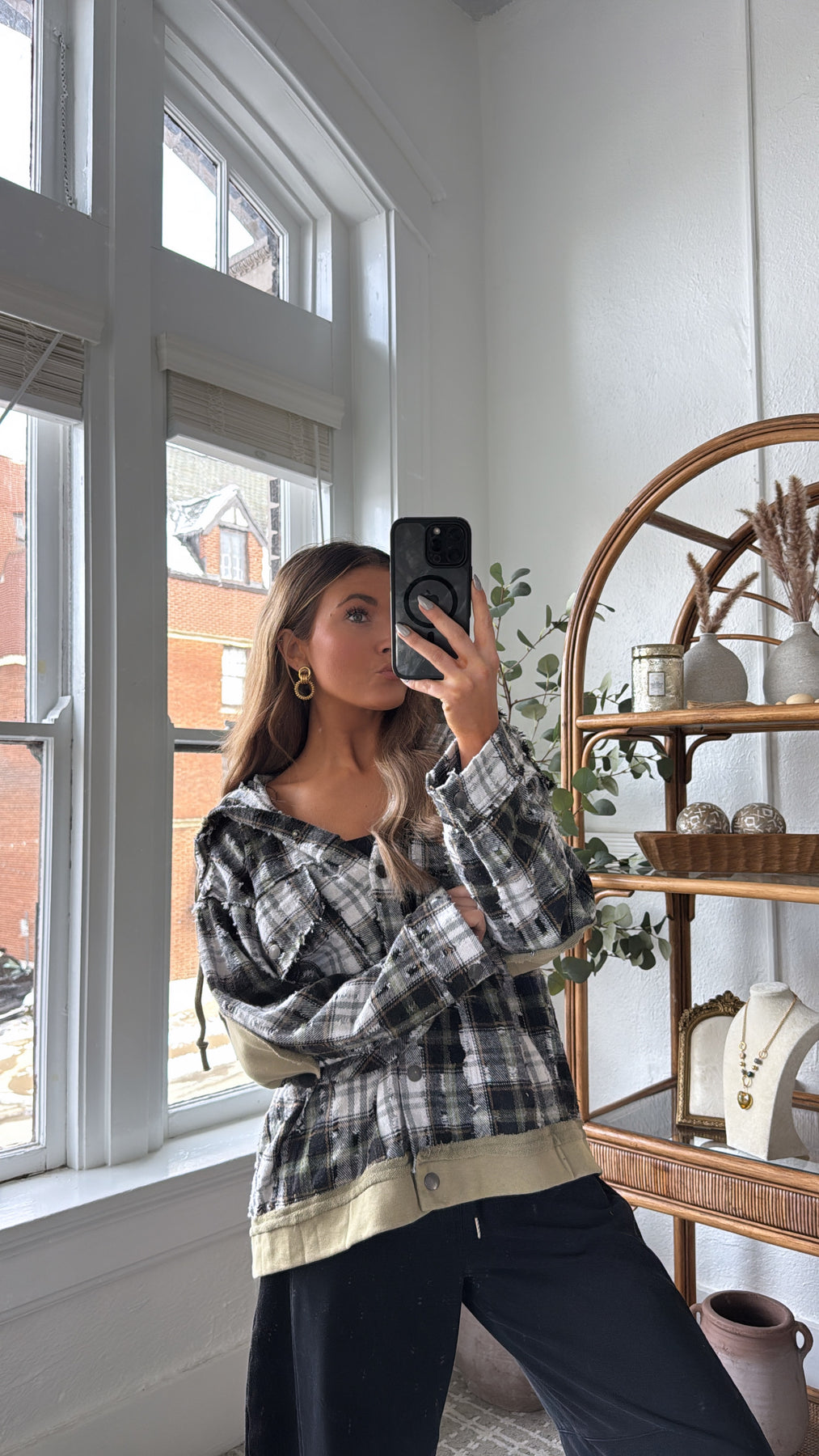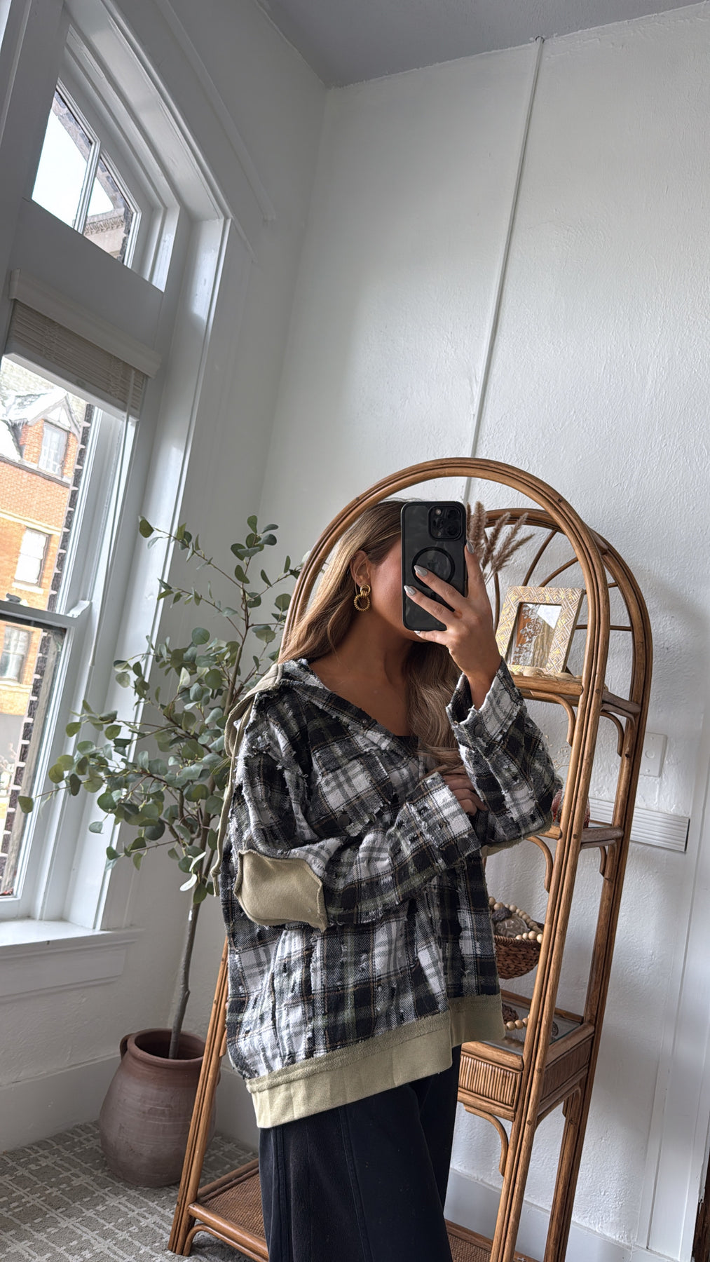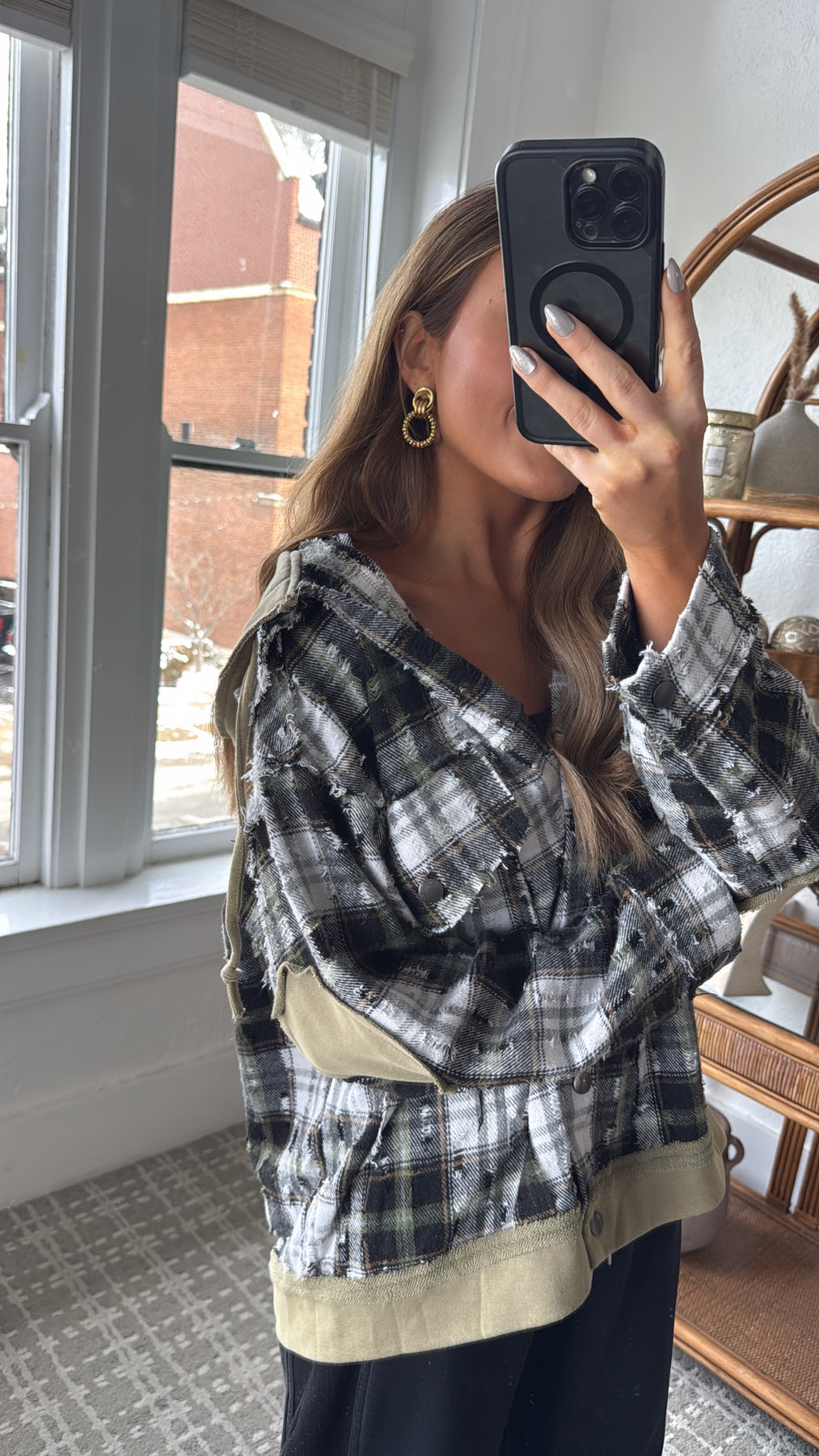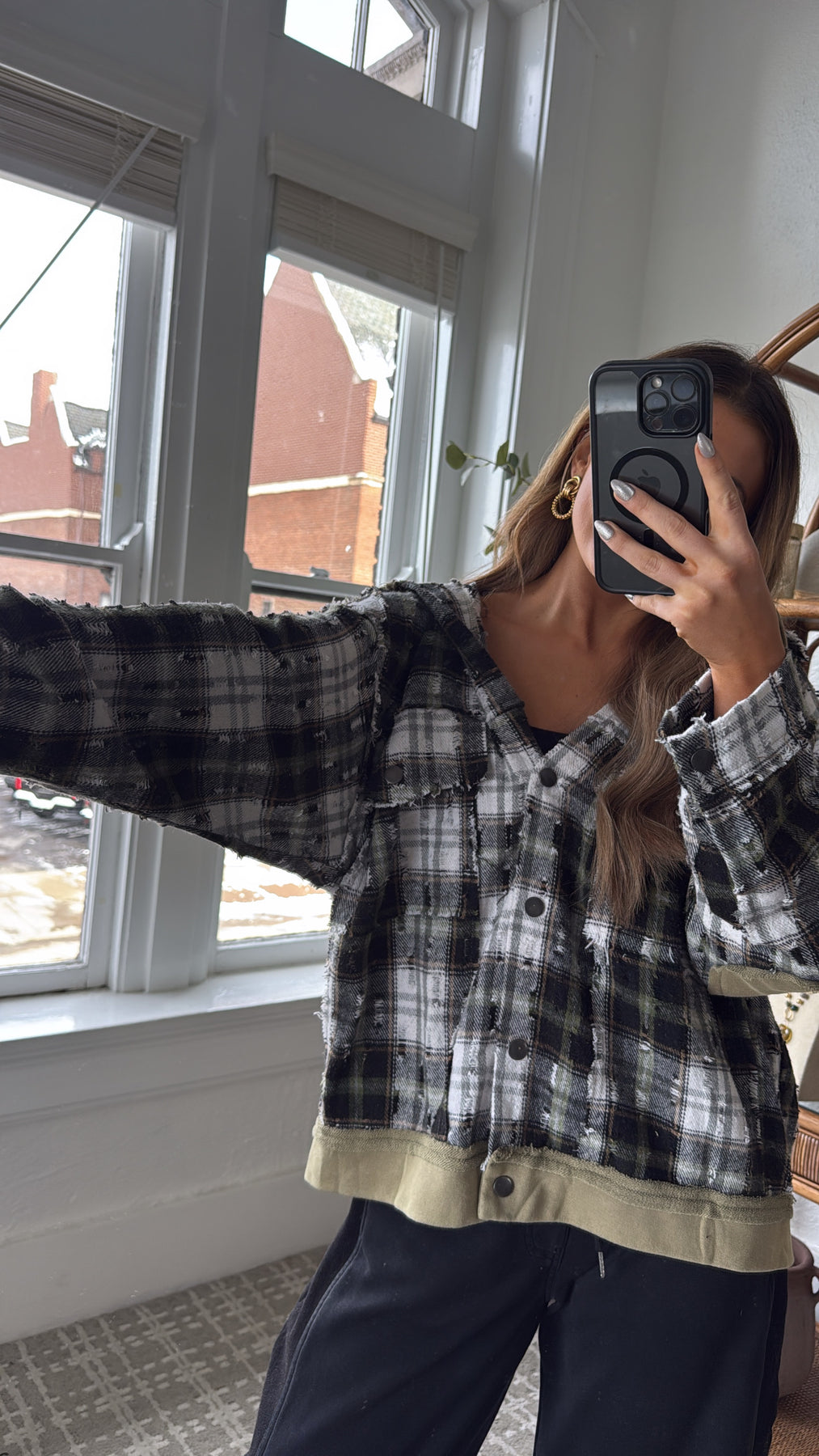 The Birch Cabin Flannel brings rugged charm and cozy comfort together in one effortlessly cool layer. This distressed plaid button-up features a mix of earthy olive, cream, and charcoal tones, creating the perfect cabin inspired palette. With raw edge detailing and lived in texture throughout, it feels like your favorite vintage find from day one.