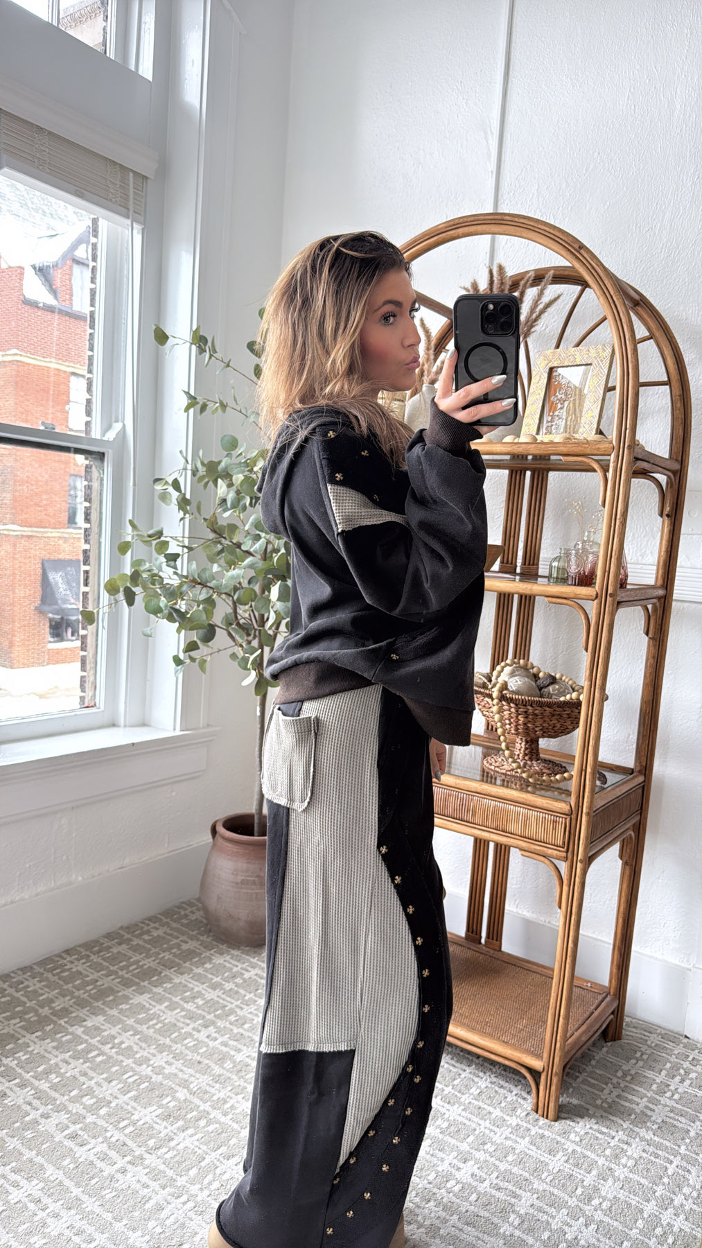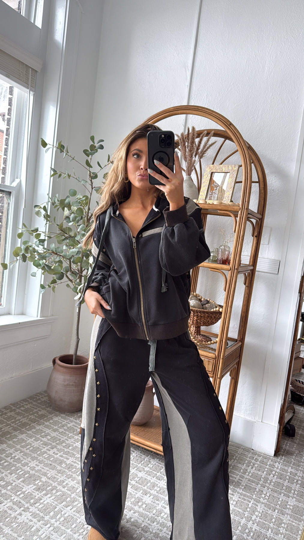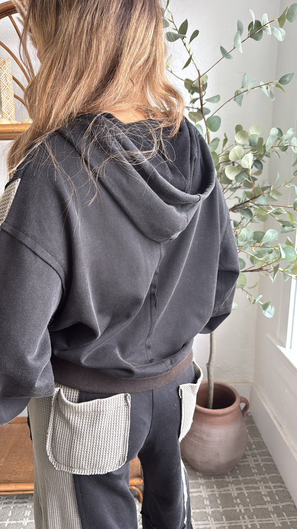Bring a little attitude to your everyday layers with the Urban Chic Waffle Jacket. This unique zip-up blends cozy comfort with standout street-style detailing. The soft black knit body is contrasted with textured waffle panels, creating an effortless mixed-media look that feels modern and fresh.