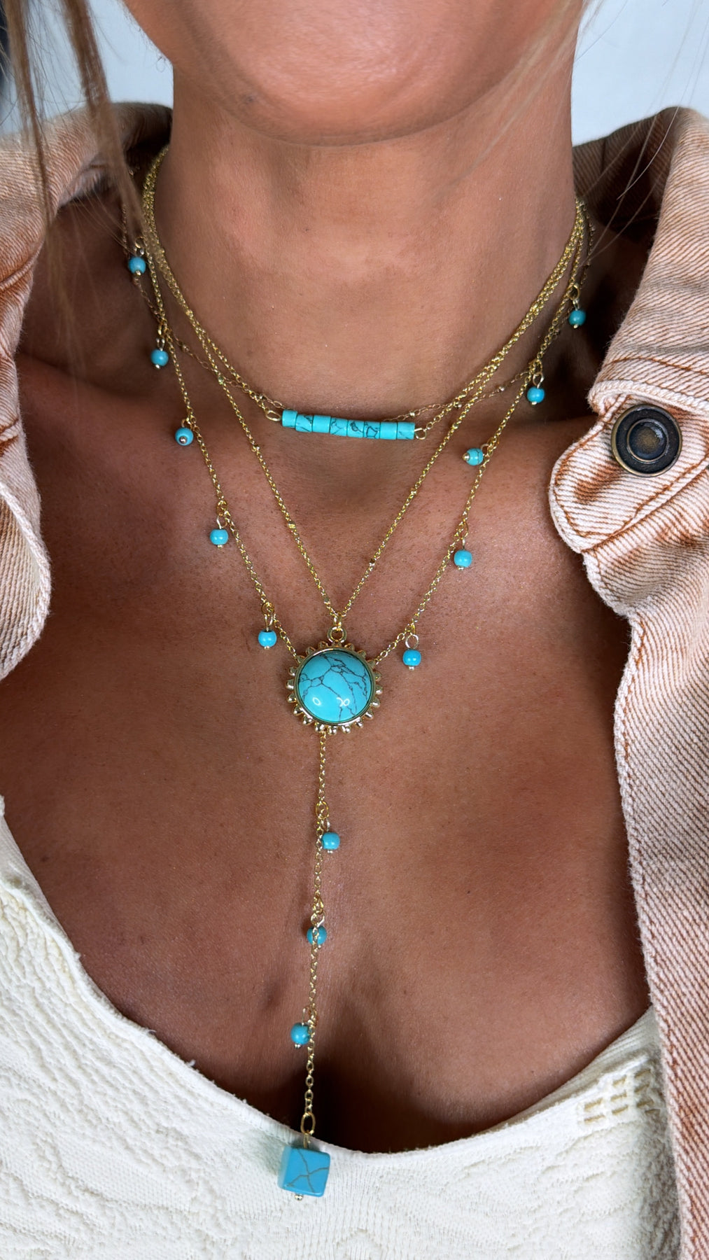 The turquoise harmony layered necklace is a gorgeous statement piece that adds the perfect pop of color to any outfit combination.