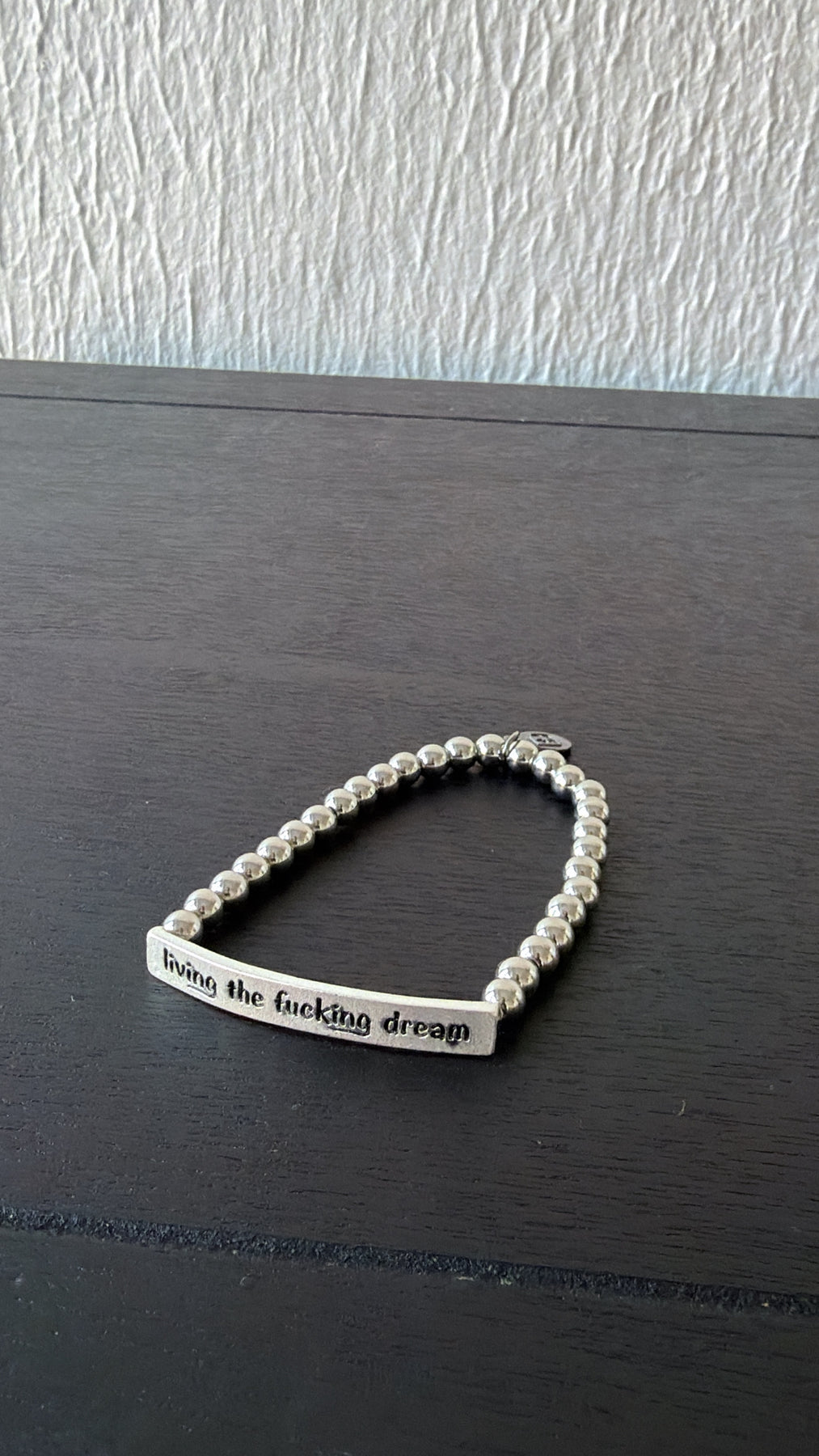For the woman who shows up, grinds hard, and still manages to laugh her way through the chaos the Living the F*cking Dream Bracelet is your new daily anthem. This bold gold-tone beauty pairs a polished beaded stretch band with a cheeky engraved bar that says exactly what you’re thinking.