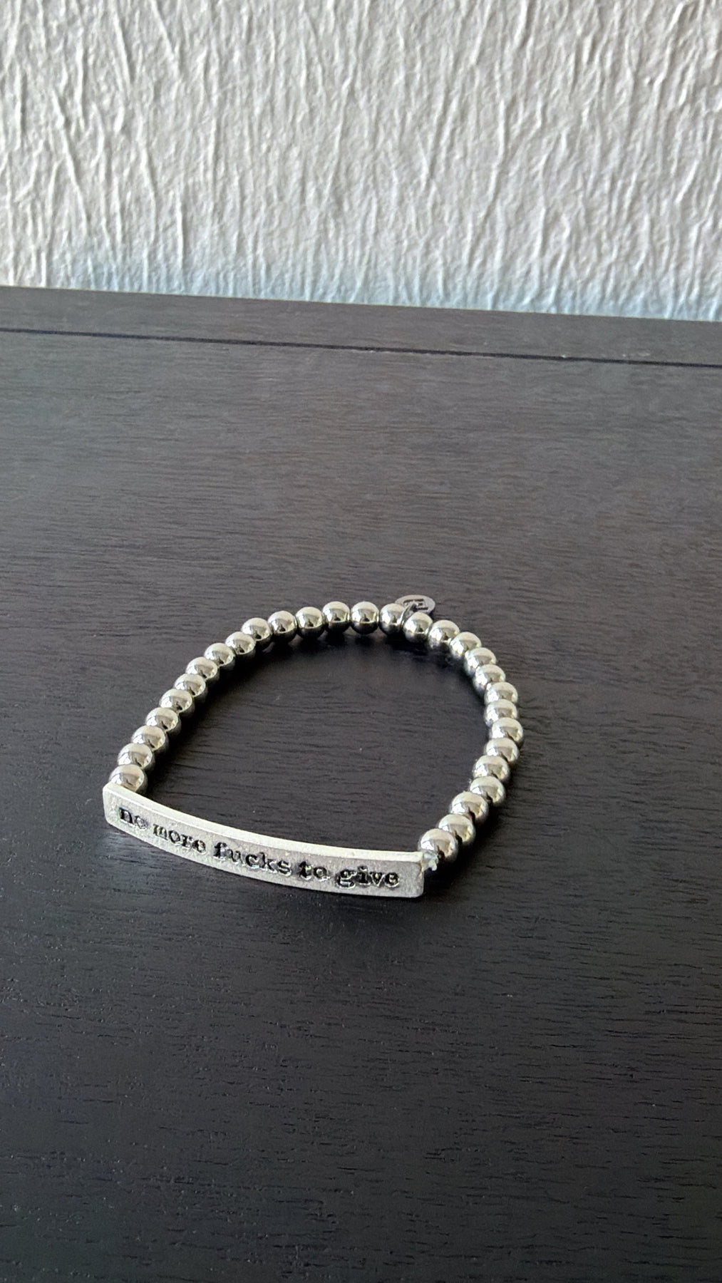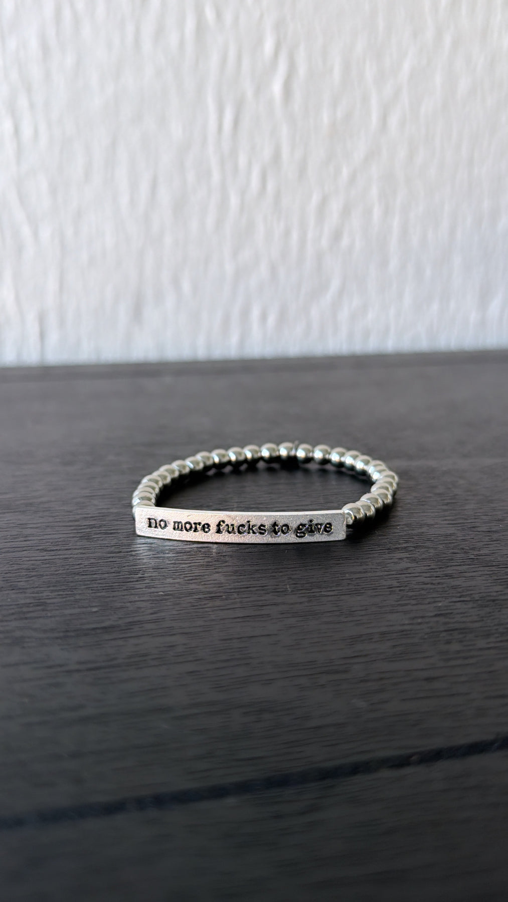 The No More F*cks To Give Bracelet features a smooth stretch bead band paired with a distressed silver-tone bar stamped with the ultimate mood: unbothered, unapologetic, and absolutely done with the nonsense.