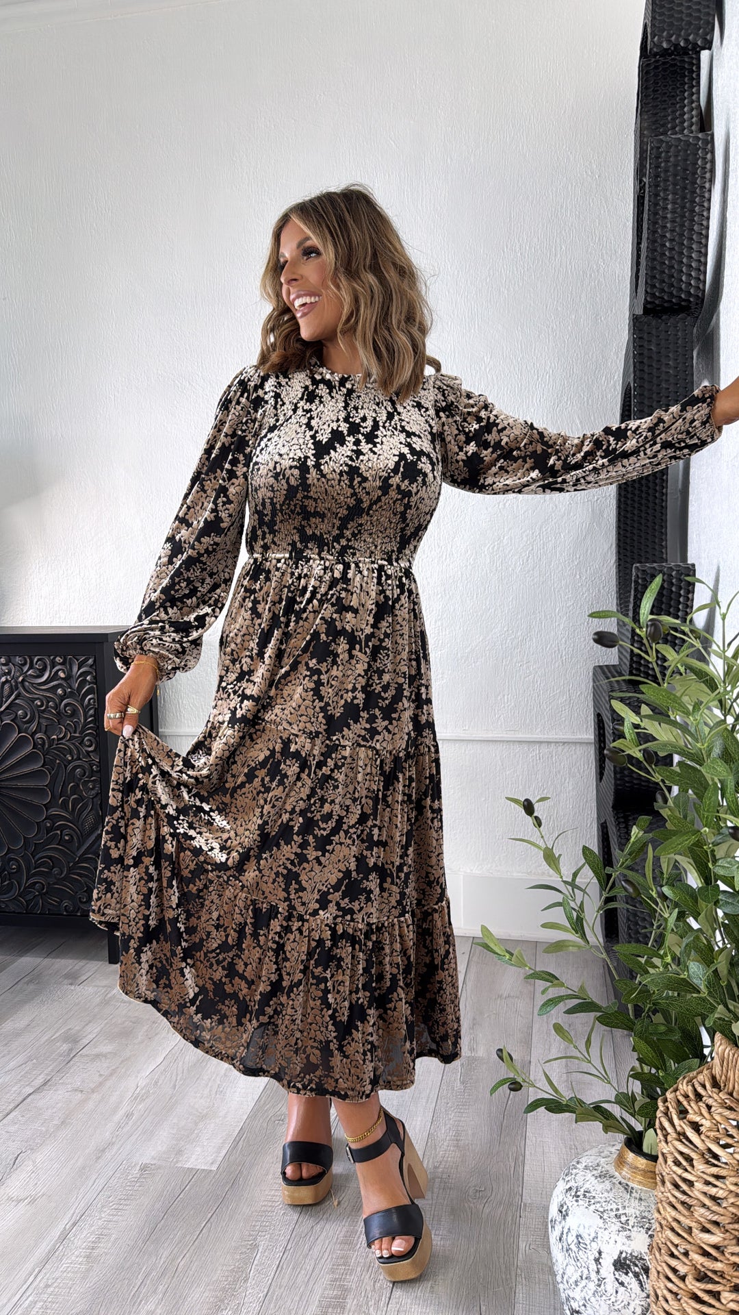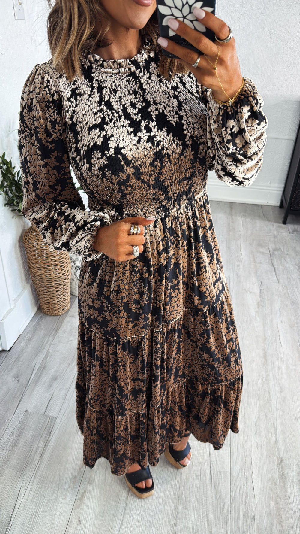 Mocha Mist Floral Print Maxi Dress, Brown Multi