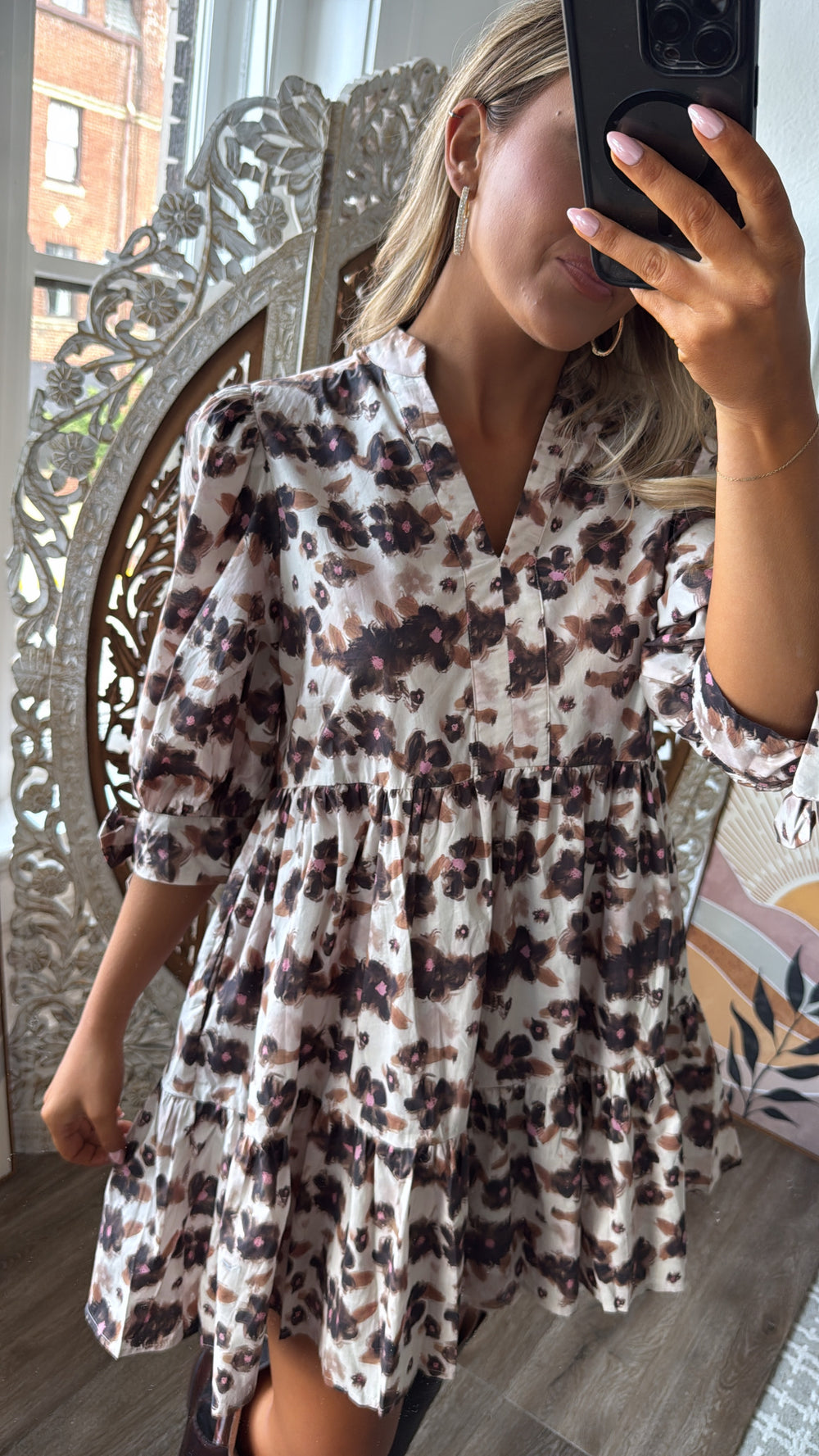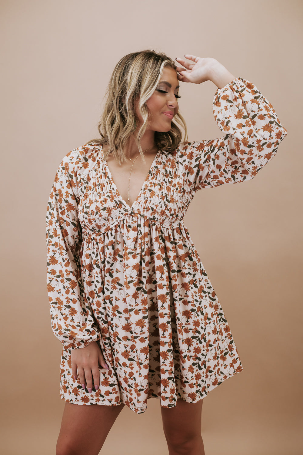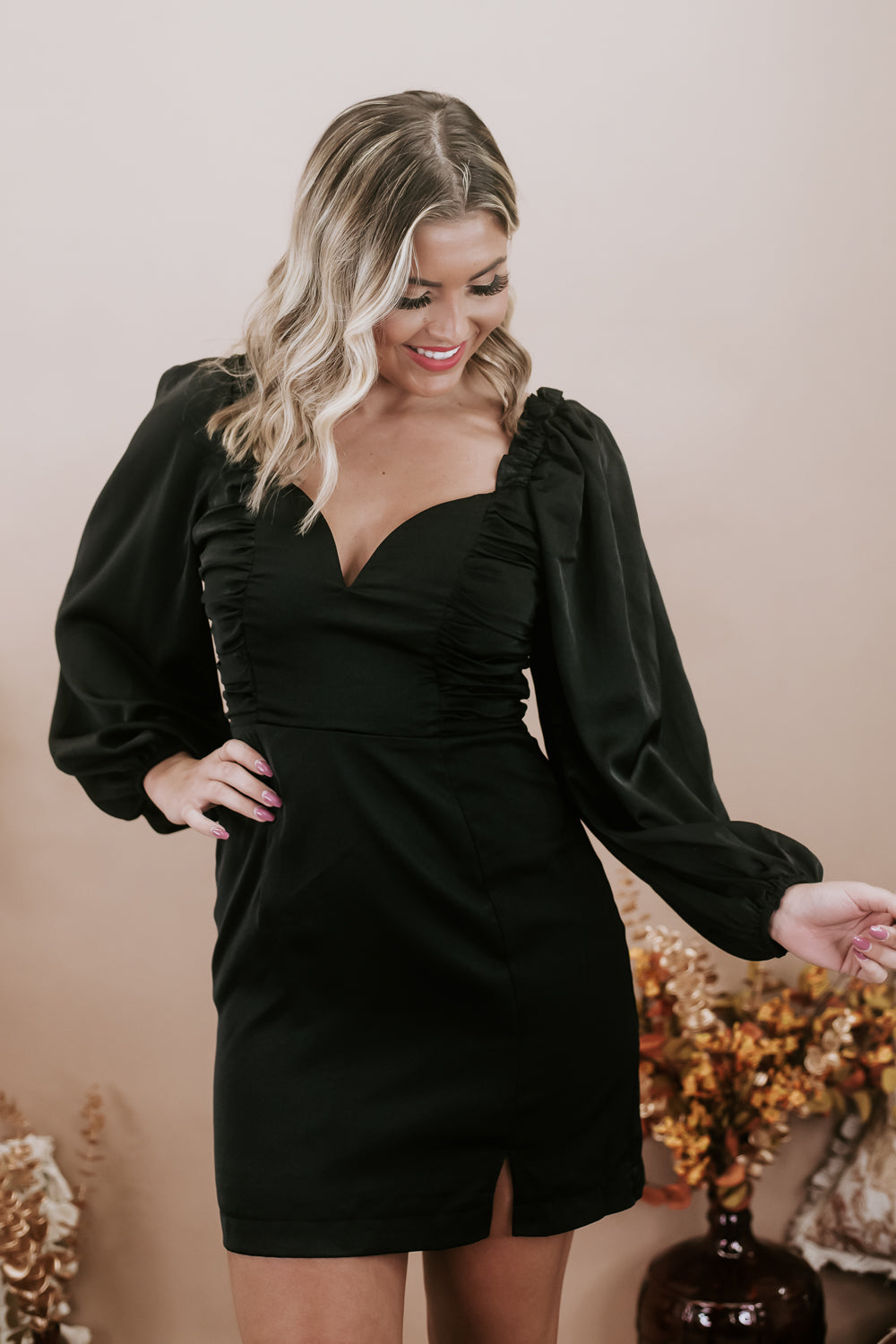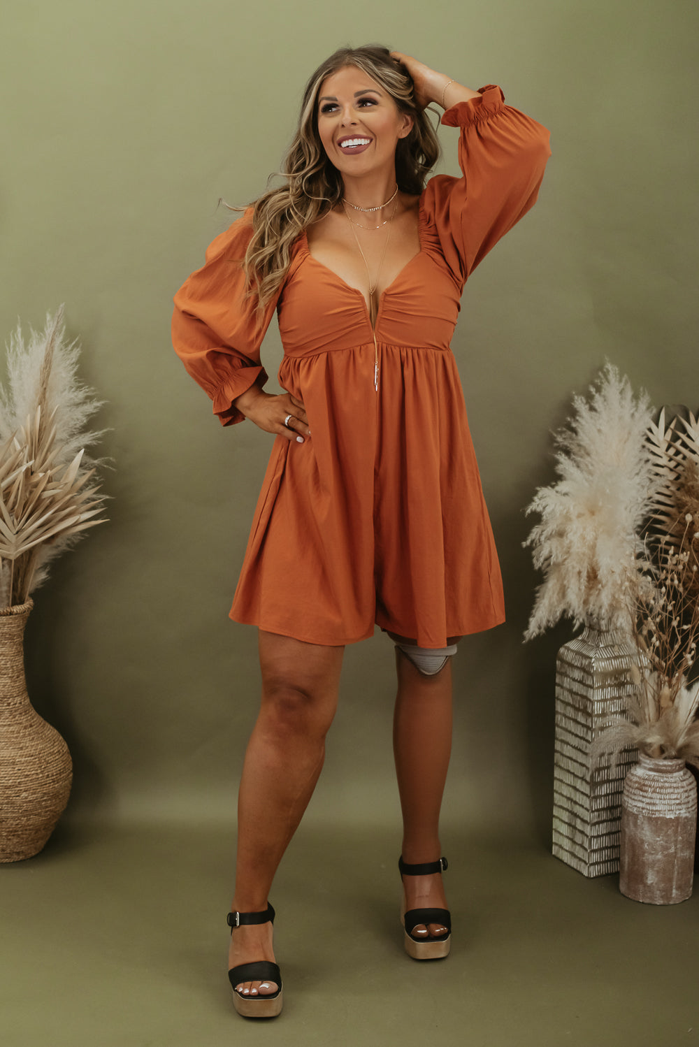 Be The Occasion Balloon Sleeve Mini Dress, Brown