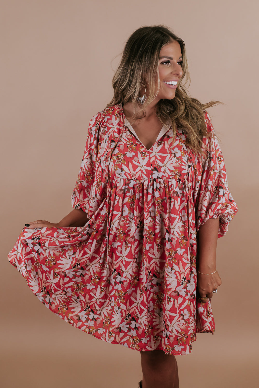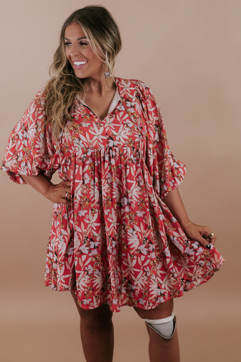 Tulip Kiss Puff Sleeve Dress, Off White/ Rose