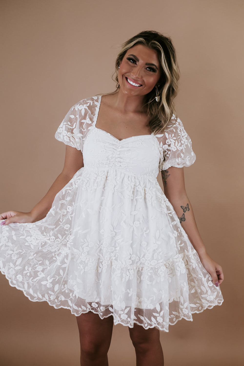 Vintage Love Boho Embroidered Mini Dress, Ivory