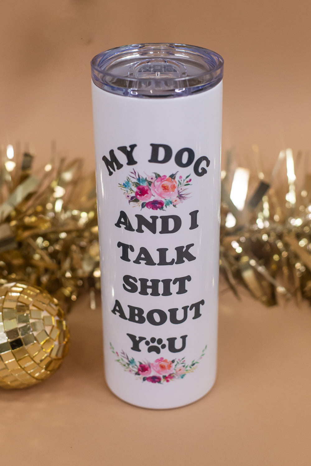 My dog and I talk sh*t with you over our morning coffee...and our evening wine.  This travel cup is perfect for dog lovers on the go. It keeps your drinks hot or cold.